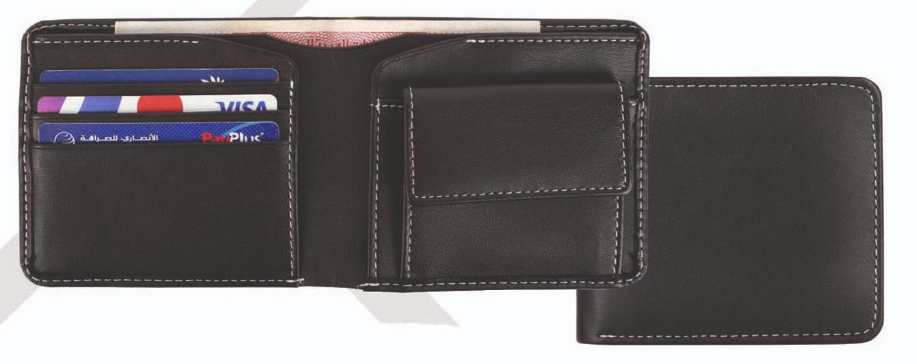 MEN'S WALLET HOLDS 6 CREDIT CARDS AND PAPER CURRENCY ; 2 ADDITIONAL SIDE POCKETS.