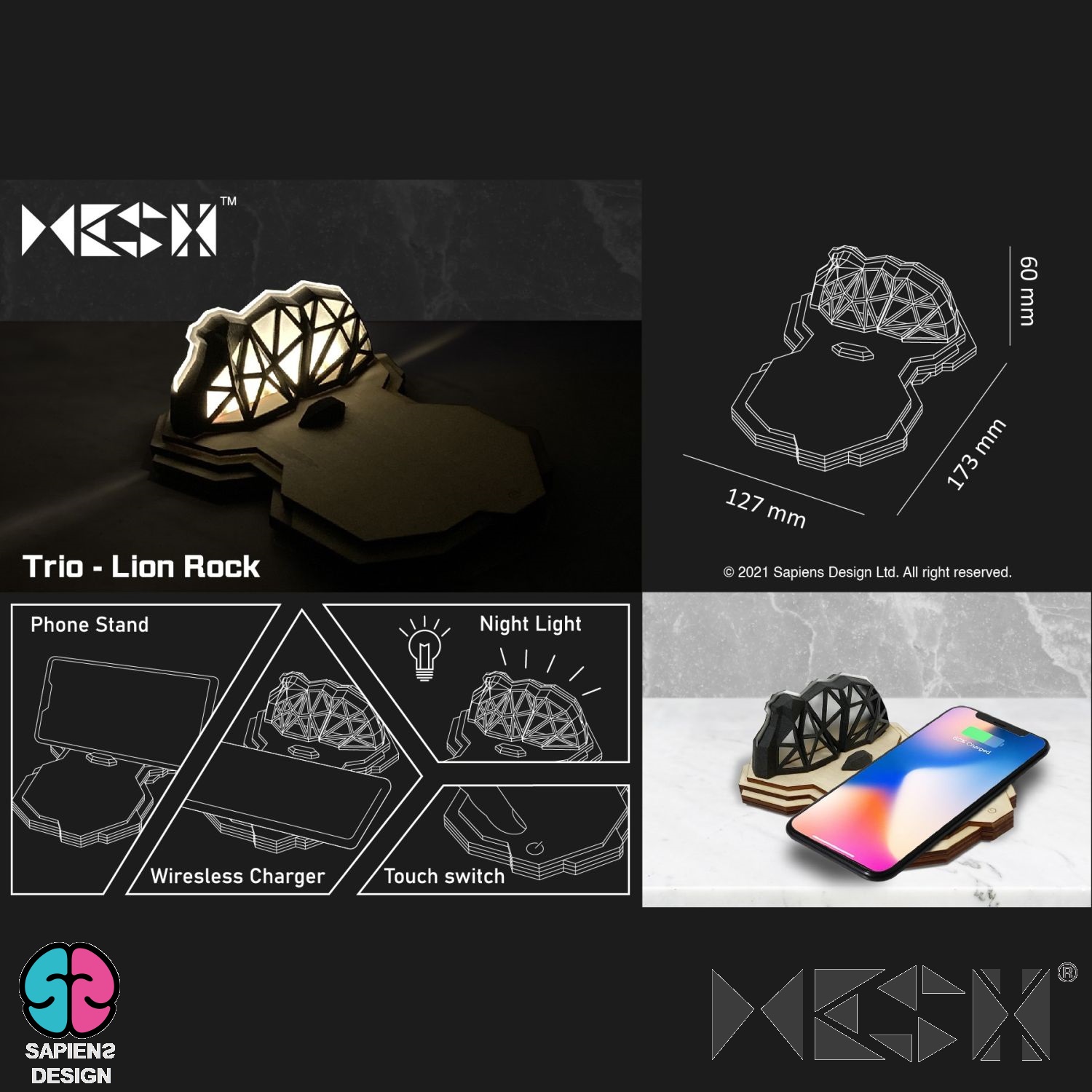 MESH Trio Wireless Charger - HK Lion Rock