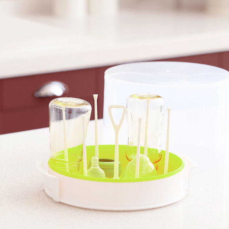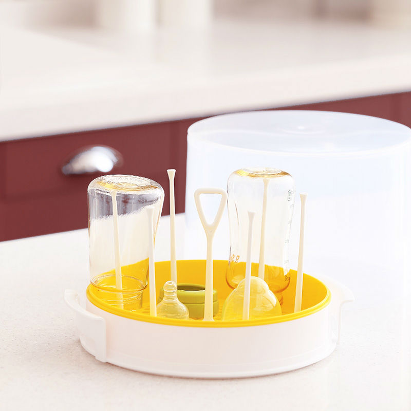 METONNE steam sterilizer helps easy bottle disinfection. Just pour a small amount of water into the sterilizer and place it in the microwave, and then operate the microwave for 3 to 5 minutes. It has 99.9% sterilizing effect. If you open the lid, dry the bottle, and then close the lid again, you can store the bottle in a sterilized condition for a long time.
