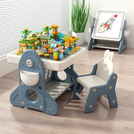 MIGO BEAR 2024 Multifunctional children learn table building blocks with Storage function