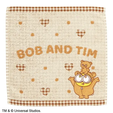 There are Bob and Tim expressed by applique embroidery and since they are on the lower right of the towel, even folding this towel in quarters, we can still see cute Bob and Time.