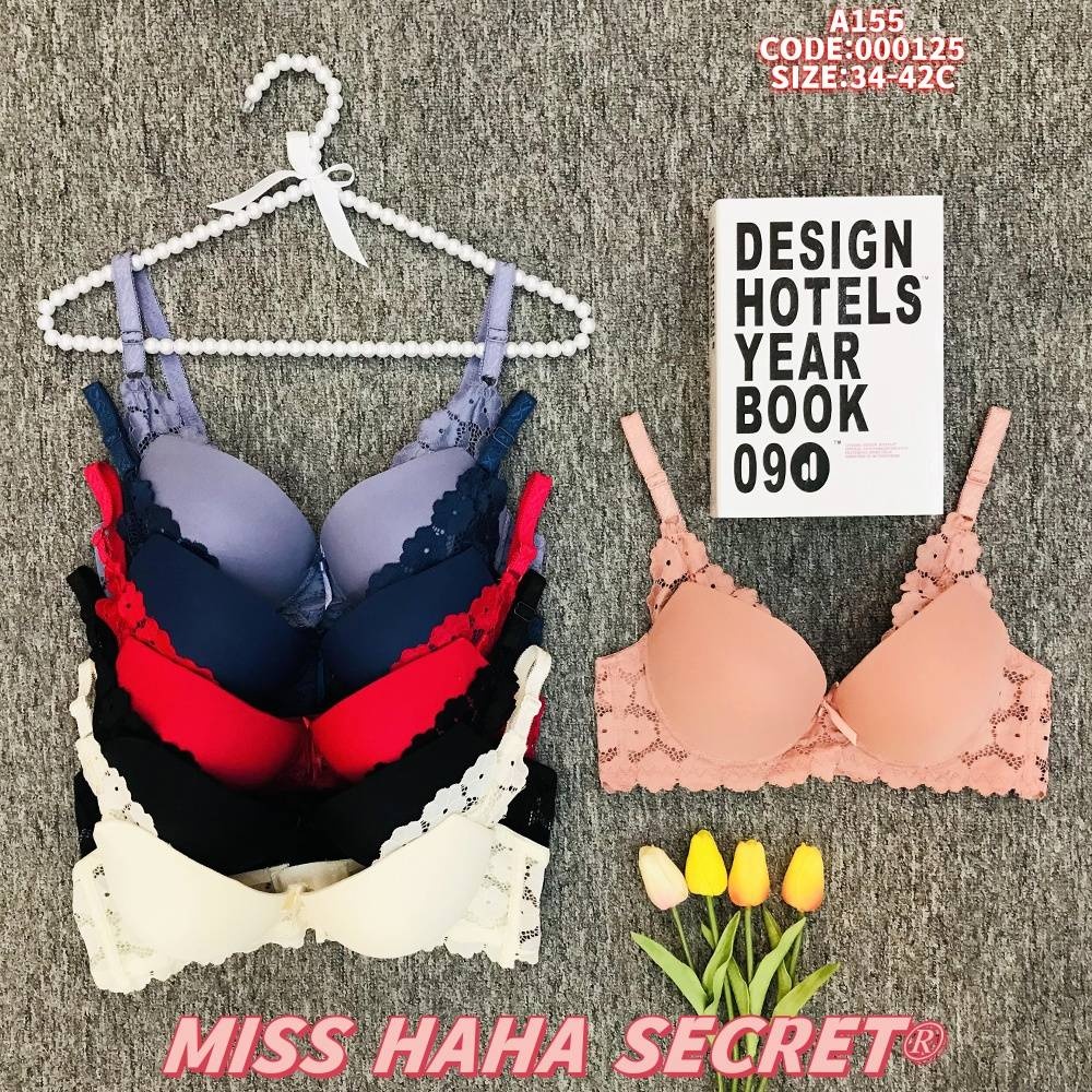 MISS HAHA SECRET Lace-Trimmed Wireless Bra - Comfortable Push-Up Lingerie (Size 34-42C, Code 000125, Multi-Color)