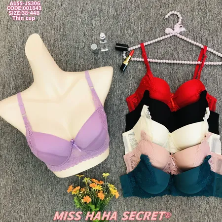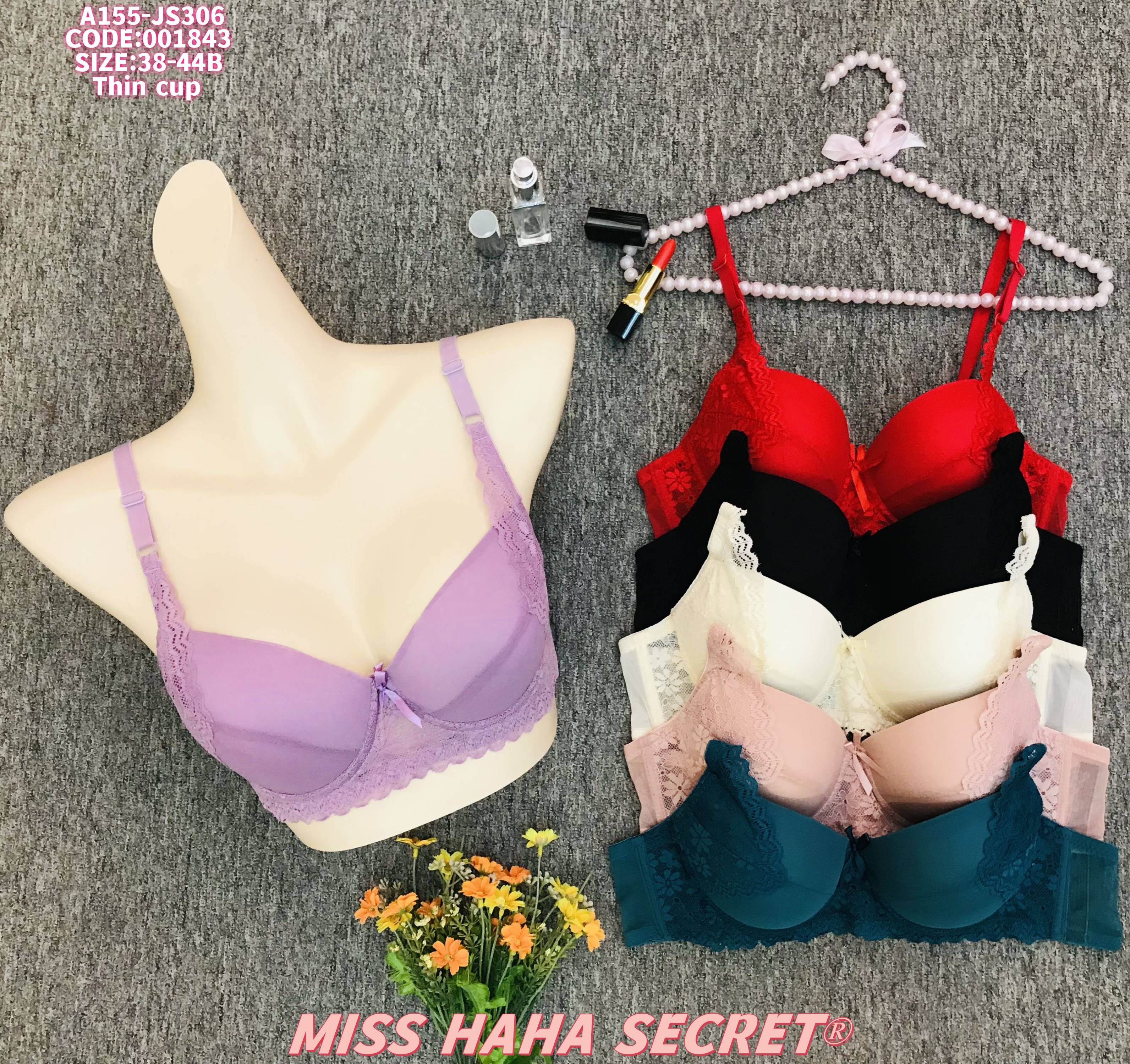 Elevate your daily comfort with this MISS HAHA SECRET thin cup bra! Adorned with delicate lace trim and a tiny bow accent, it comes in soft purple, bold red, classic black, creamy white, gentle pink, and deep teal. Designed for size 38-44B (code: 001843), the thin-cup construction ensures breathability, while the smooth fabric and feminine details make it perfect for everyday wear—blending subtle style with all-day ease.