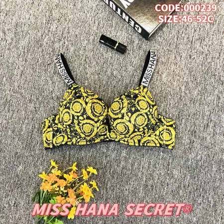 Stand out with this eye-catching MISS HANA SECRET push-up bra! Featuring a striking black-and-gold iconic pattern and branded adjustable straps, it blends bold style with comfortable support. Designed for sizes 46-52C, the soft fabric and structured cup shape ensure a flattering fit—ideal for adding a statement touch to your lingerie drawer.