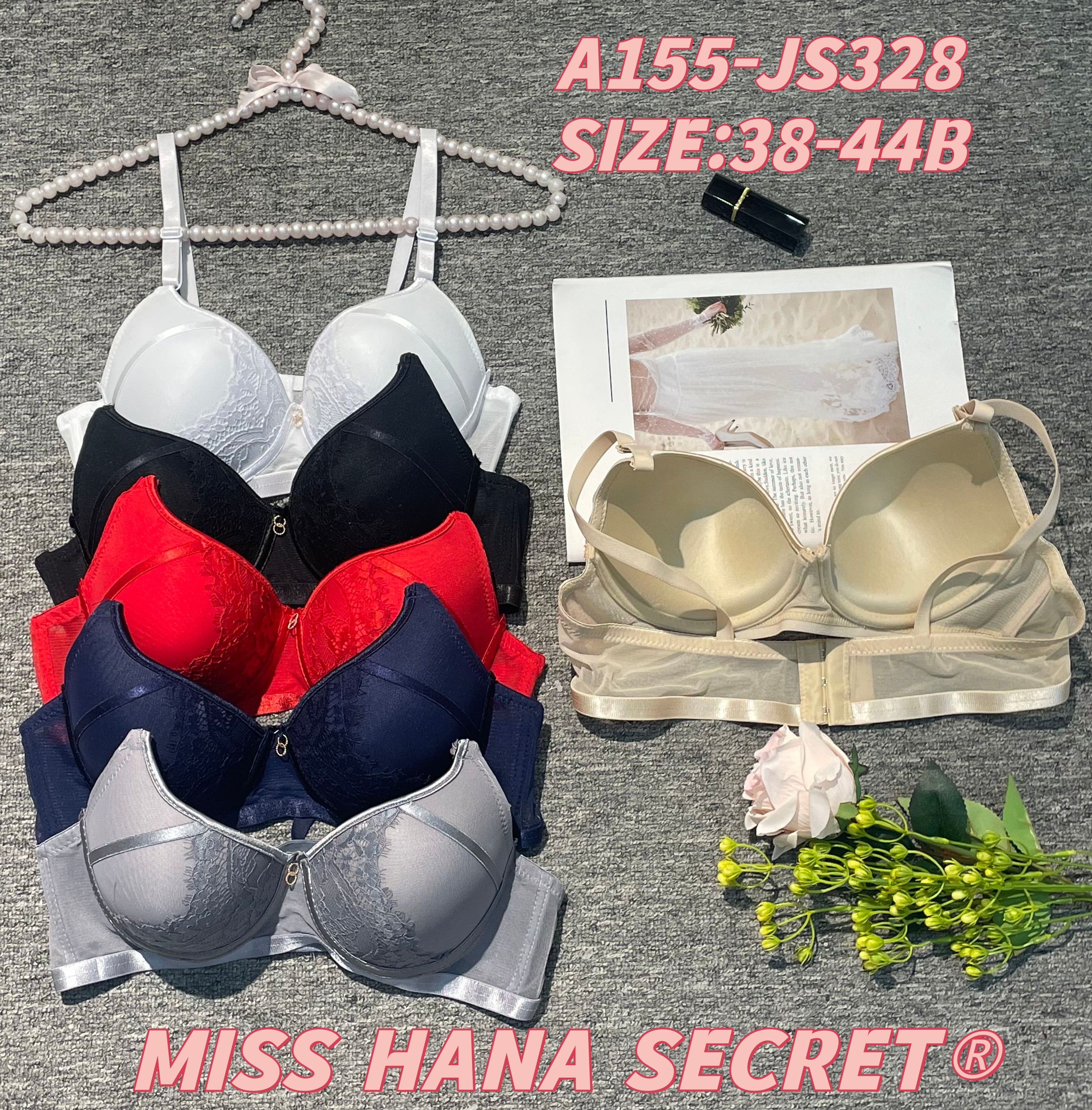 Upgrade your intimate wear with the MISS HANA SECRET Thin Cup Bra (Code: A155-JS328), tailored for sizes 38-44B. This bra combines lightweight, breathable thin cups with delicate lace detailing for a blend of comfort and subtle elegance.