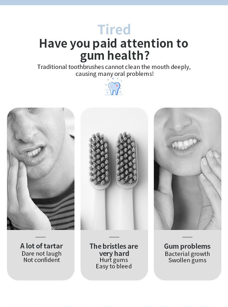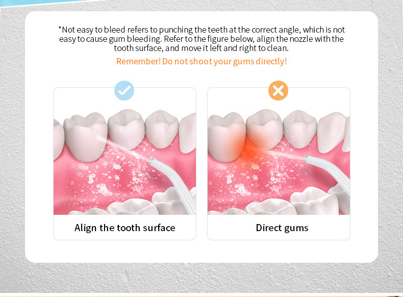 It is also gentler than traditional brushing methods and is less likely to damage teeth and gums under normal operation. Causes damage and effectively removes plaque and food residue from teeth, helping to maintain oral hygiene