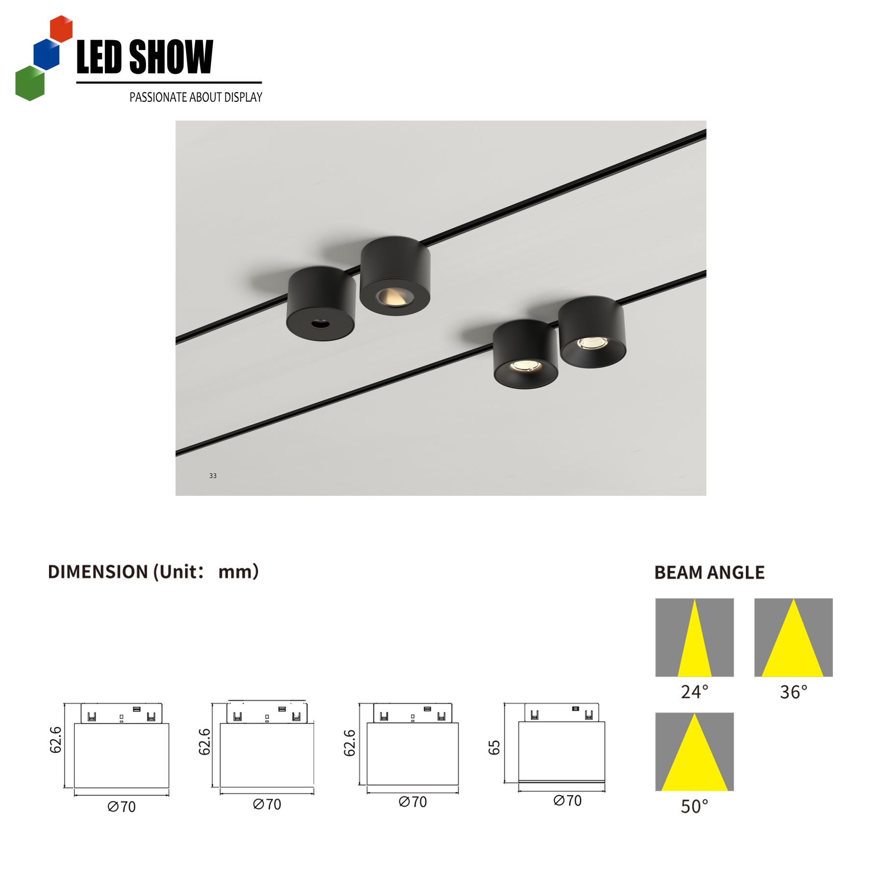 · Multiple Beam Angle Options: 24° (spot), 36° (medium), 50° (flood) for flexible lighting effects