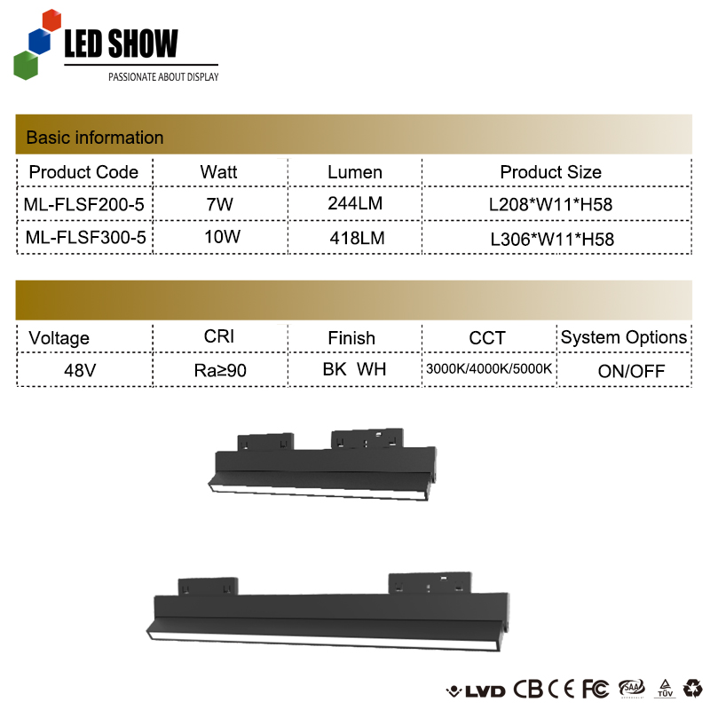 ML-FLSF Series Ultra-Slim Track Garment LED Light 7W/10W 48V 108° Wide Beam 3000K/4000K/5000K Optional