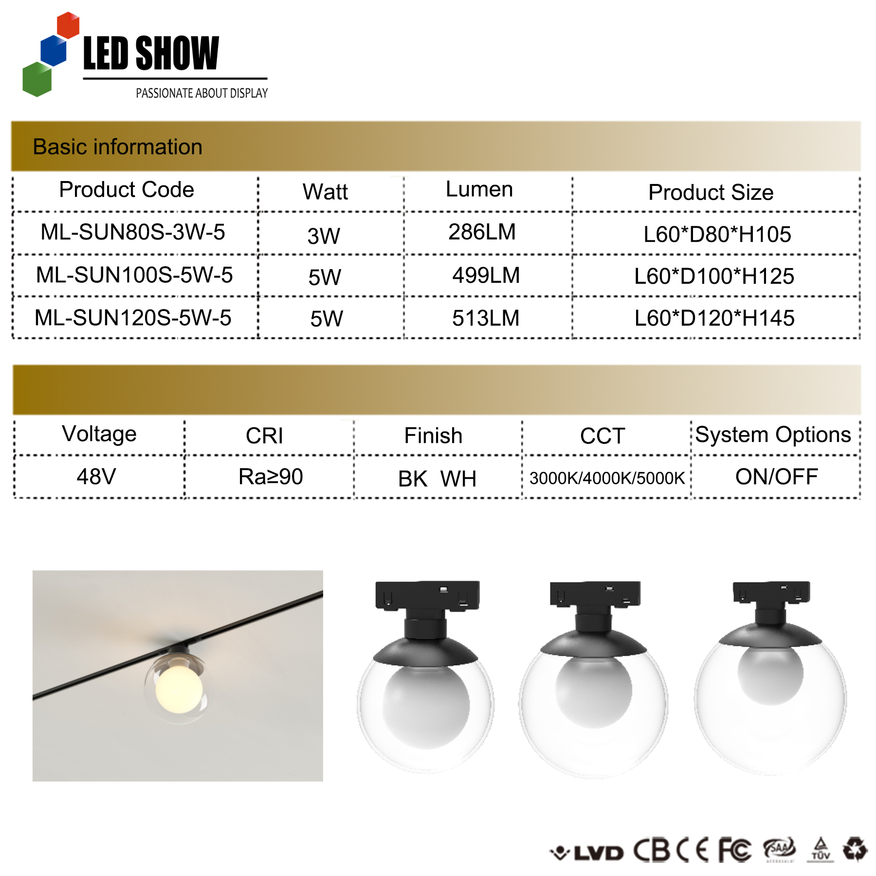 ML-SUN Series Circular Track Lights 3W-5W 48V High CRI Ra90 3000K/4000K/5000K Commercial Display Lighting
