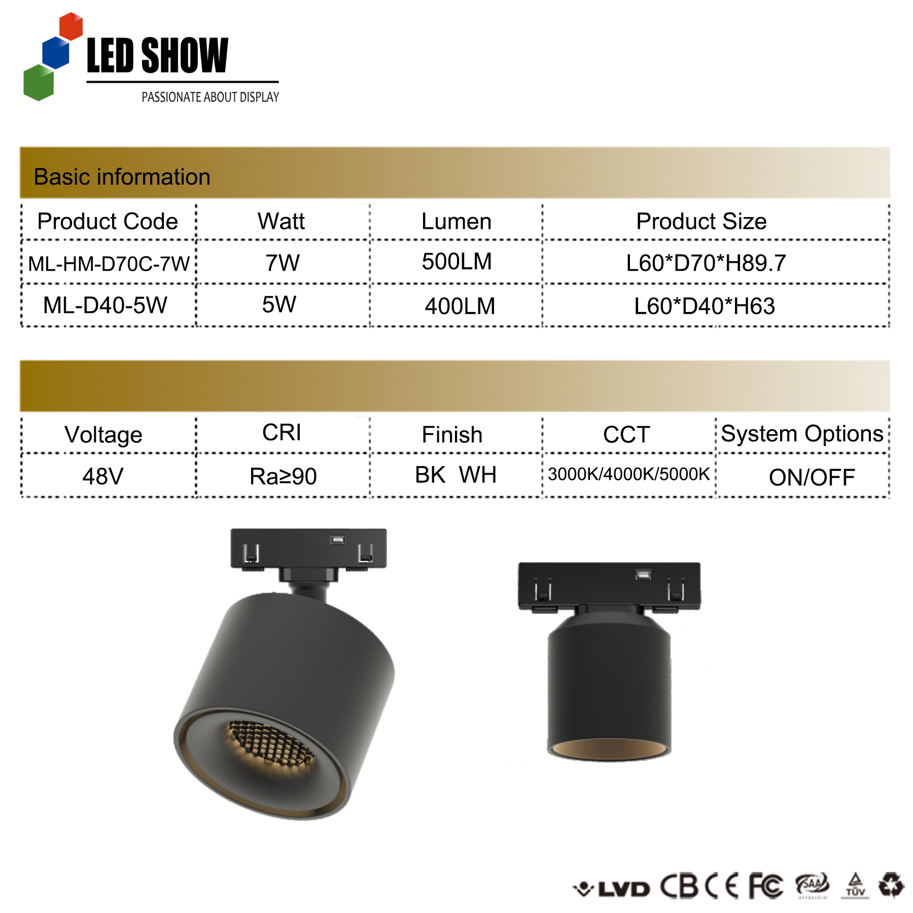 ML Series Adjustable Beam Track Lights 5W-7W 48V 24°/36° Beam Angle 3000K/4000K/5000K Optional Honeycomb Anti-Glare Commercial Spotlights
