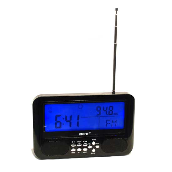 Displayed here is a clock radio with a built-in MP3 player. It flaunts an advanced antenna for signal reception. This MP3 clock radio is lightweight, compact and durable.