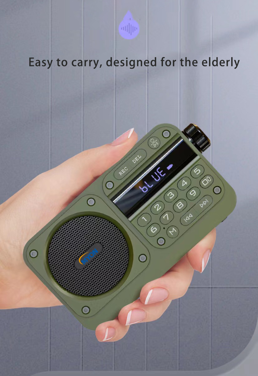 Portable radio with BT, USB, TF card, FM, REC, Earphone
