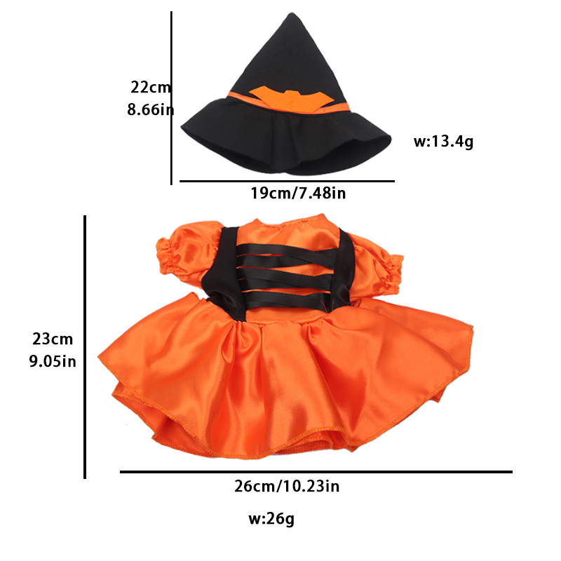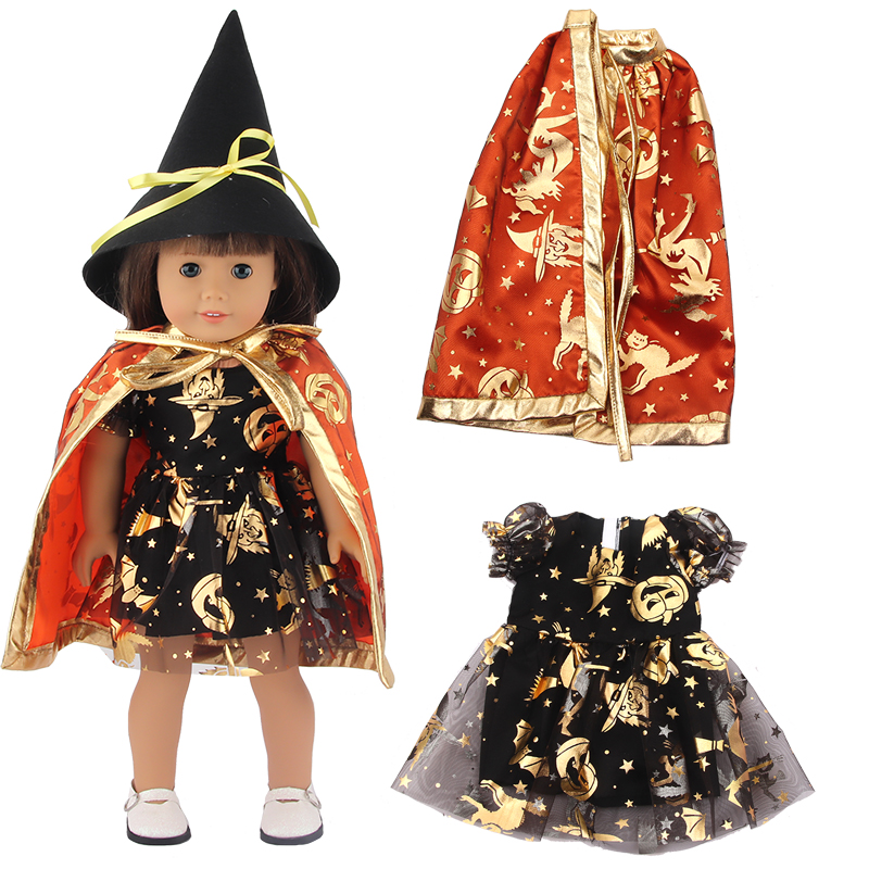 MSYO 18-Inch Fashion Doll Clothes Halloween Witch Costume for Girls Soft Toy for Cosplay and Formal Wear Doll Decoration