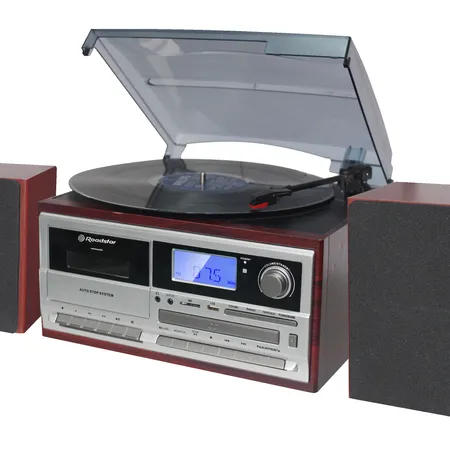 3 speed turntable with programmable CD/MP3 player, USB/SD encoding, cassette player and radio (optional DAB) and external speaker box