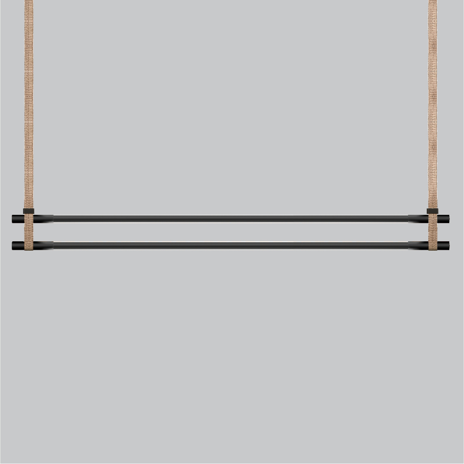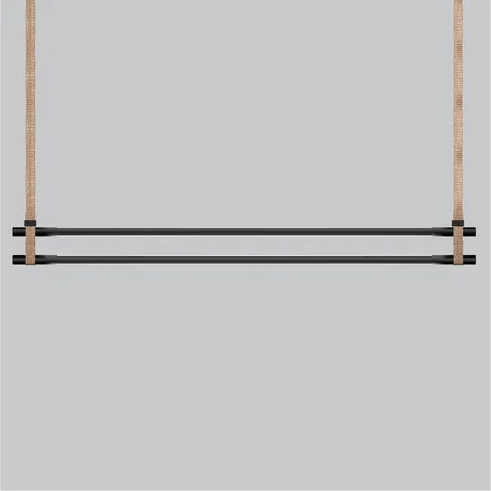 Body Main light type: Vertical double tube Up&down diffusor Length option: 1.5m/2m Color: Skin-touch black Hanging wire: Khaki braided strap Installation: Recessed pendant | Light Source Wattage: 2*72W/2*96W CRI: ≥Ra90
