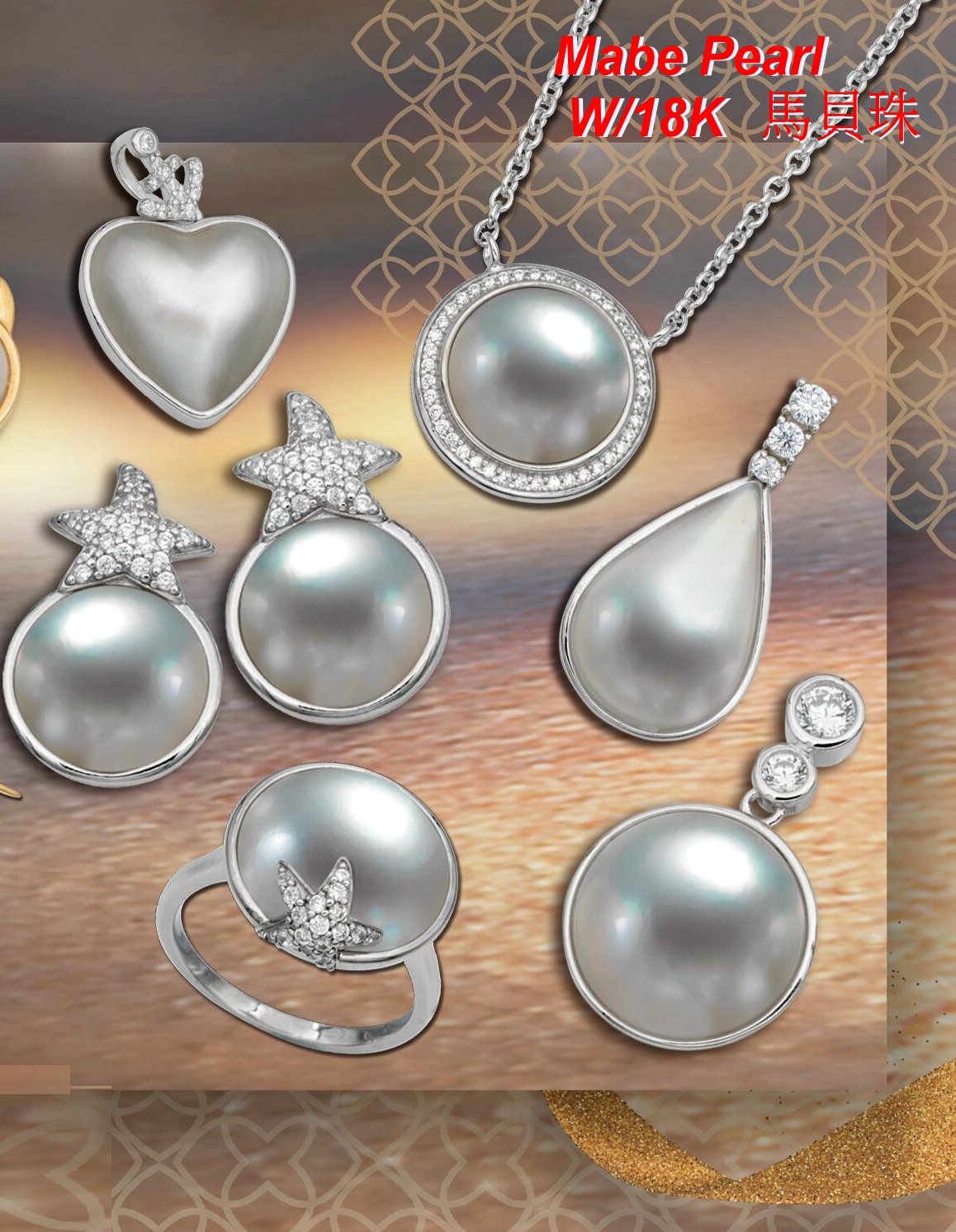 • Mabe Pearls with Sterling Silver Earrings, ring and pendant