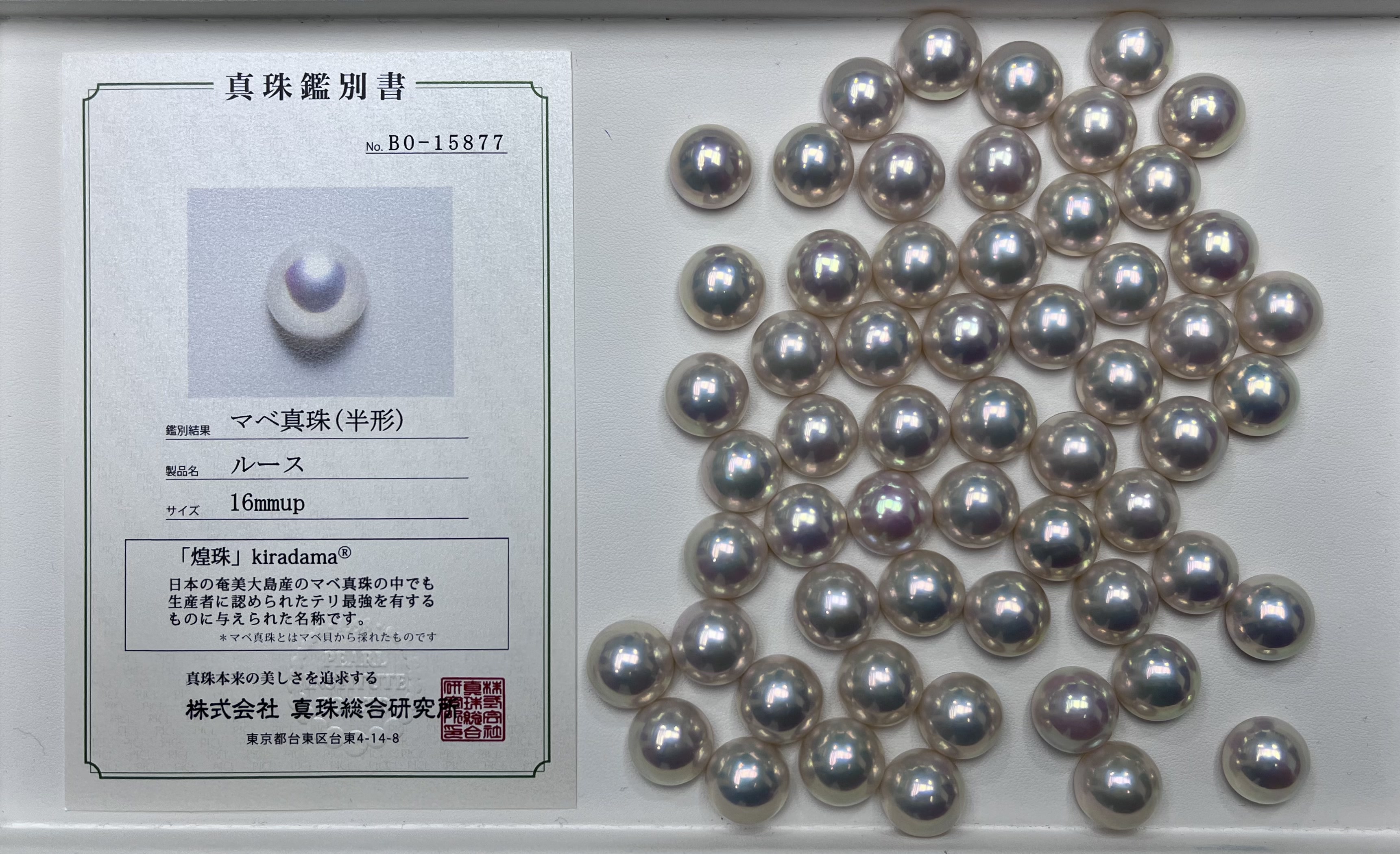 High quality Japanese mabe pearl loose, with kiradama certificate. 16mm.