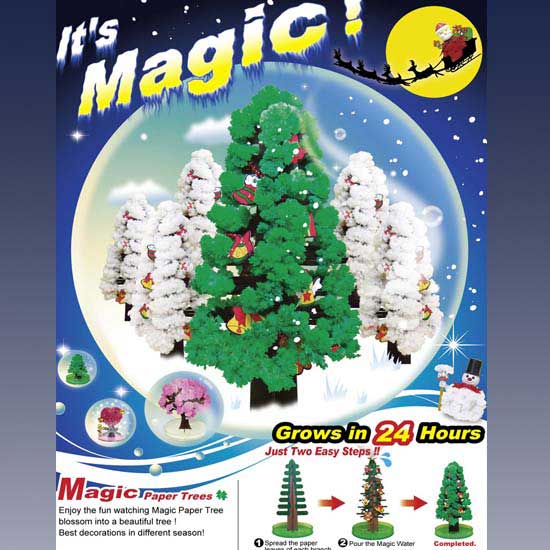 Highlighted is a magic Christmas tree which is made of paper. It "grows" and "blossoms" in merely 24 hours. Simply enjoy the fun watching it become a beautiful tree, which is for sure a unique Christmas decoration.