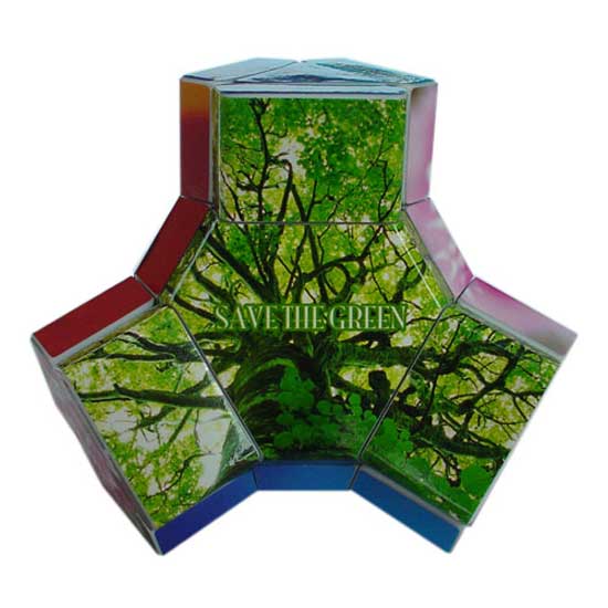 Featured is a magical cube that is inspired by a Rubik's cube. It boasts a unique shape for an unmatched playing experience. The facets are printed with real pictures or plain-colored for added fun.