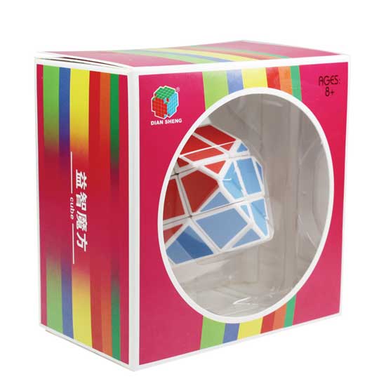 Highlighted is a magic cube designed in a diamond shape. The colored plates of the cube come in various geometrical shapes. This magic cube brings great challenge to children to twist it into its original shape.