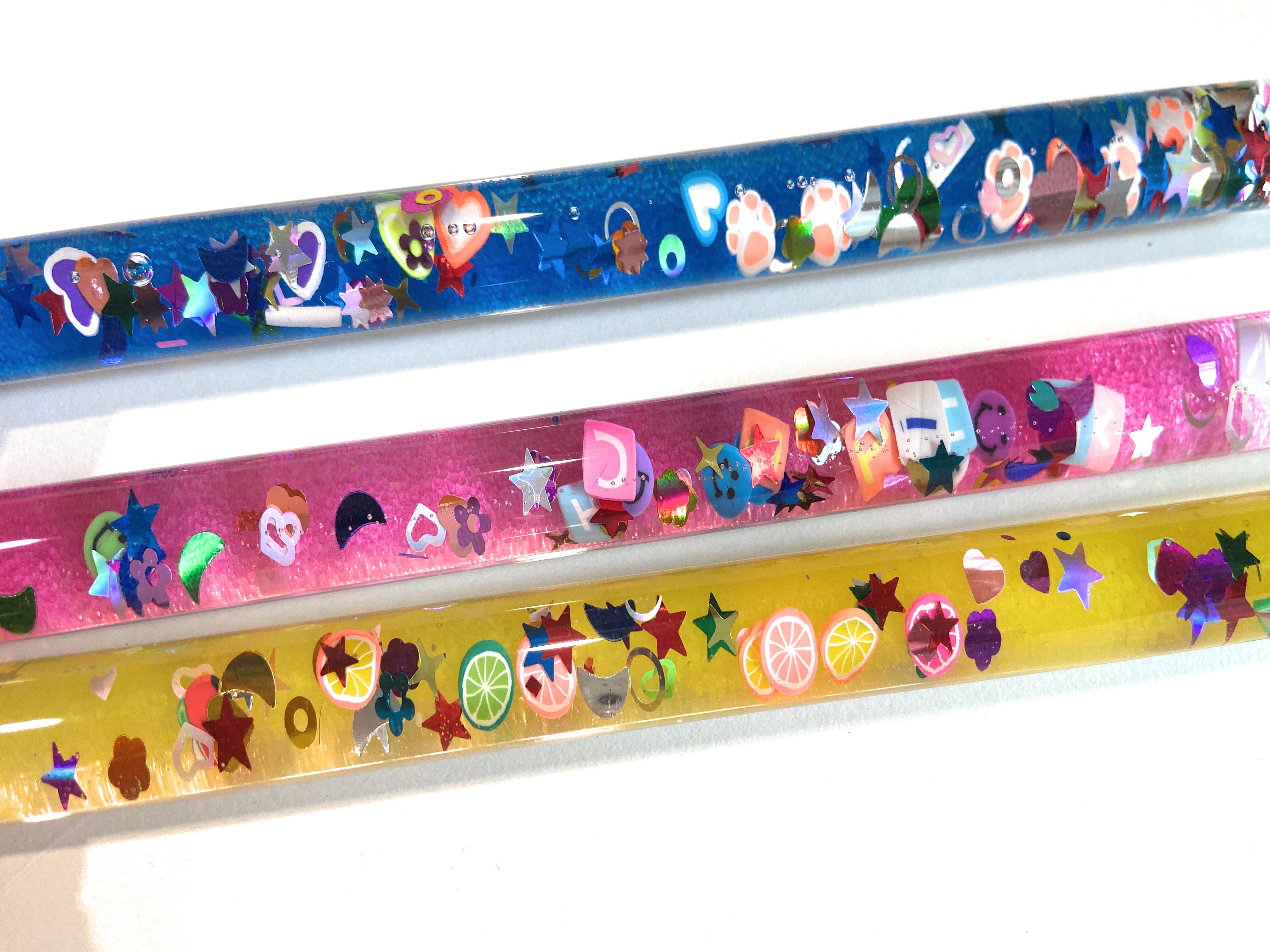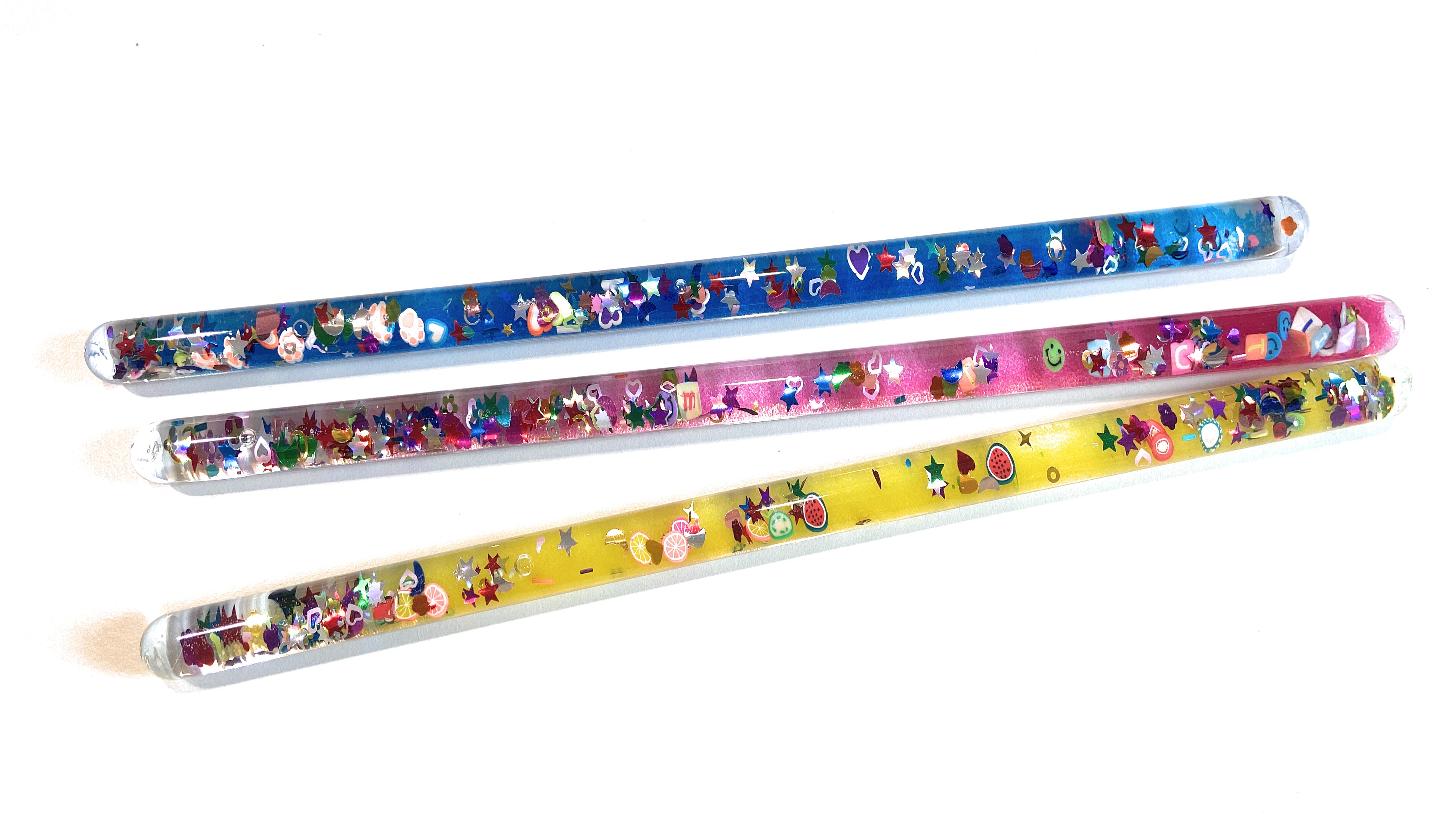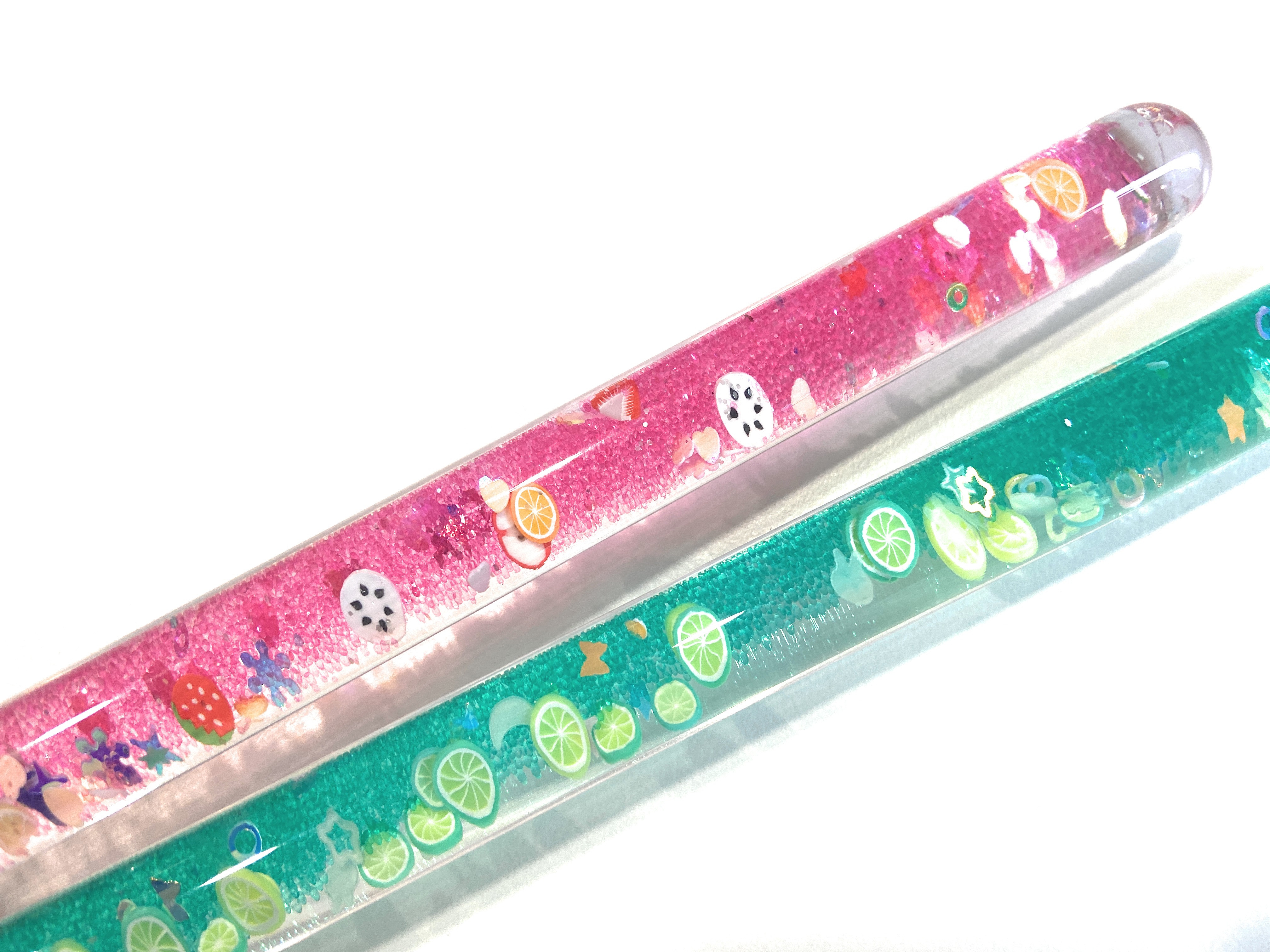 From dancing fruits and smiling stars to sea creatures and hearts, each wand is like a tiny underwater dreamscape, making them delightful keepsakes and engaging sensory tools for all ages.