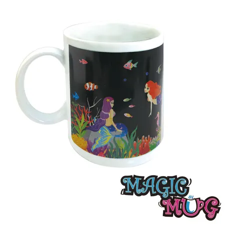 The mug changes color in a second! Plentiful colors appeared when you pour hot liquid above Celsius 45 degrees into it!