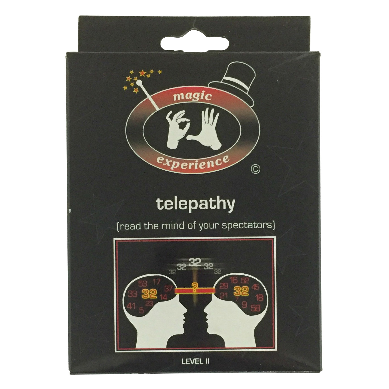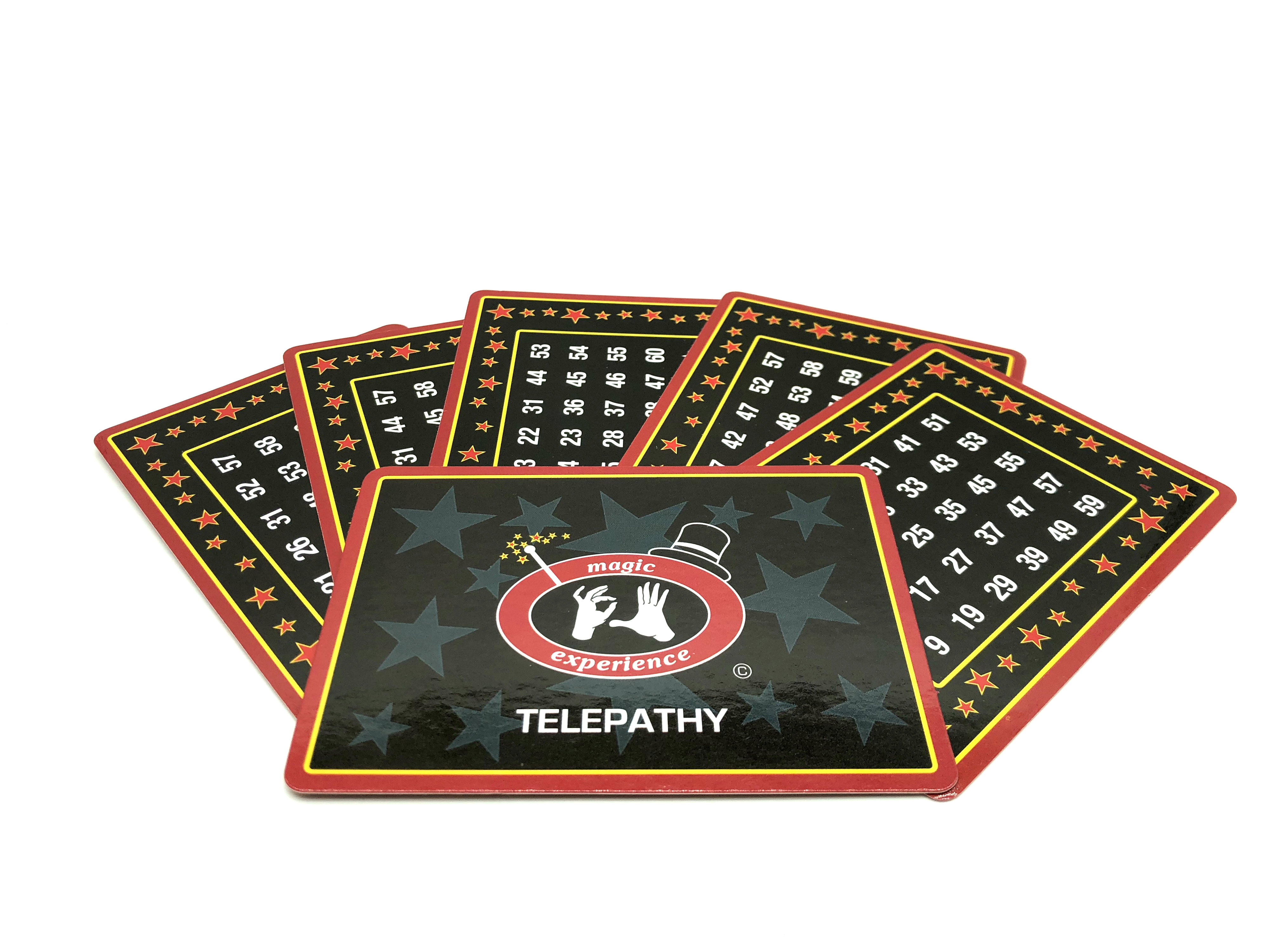 This magic trick set is called Telepathy. The instruction manual included teaches you how to read the mind of your spectators. Perform this trick and surprise your friends at parties.