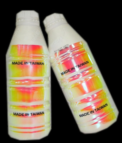 Upon the market trend, we decide to make a step further to adjust the customer demands. Our R&D department colleagues had been research and develop for a half year and it was successfully applicable on different shape plastic bottles. Magical shrink film will come out with riotous sharp colors; and you might be able to see colors changing in different angles, curves and different background colors. We have confidence on this film due to it is particularly characteristics compare to general clear shrinkable films.