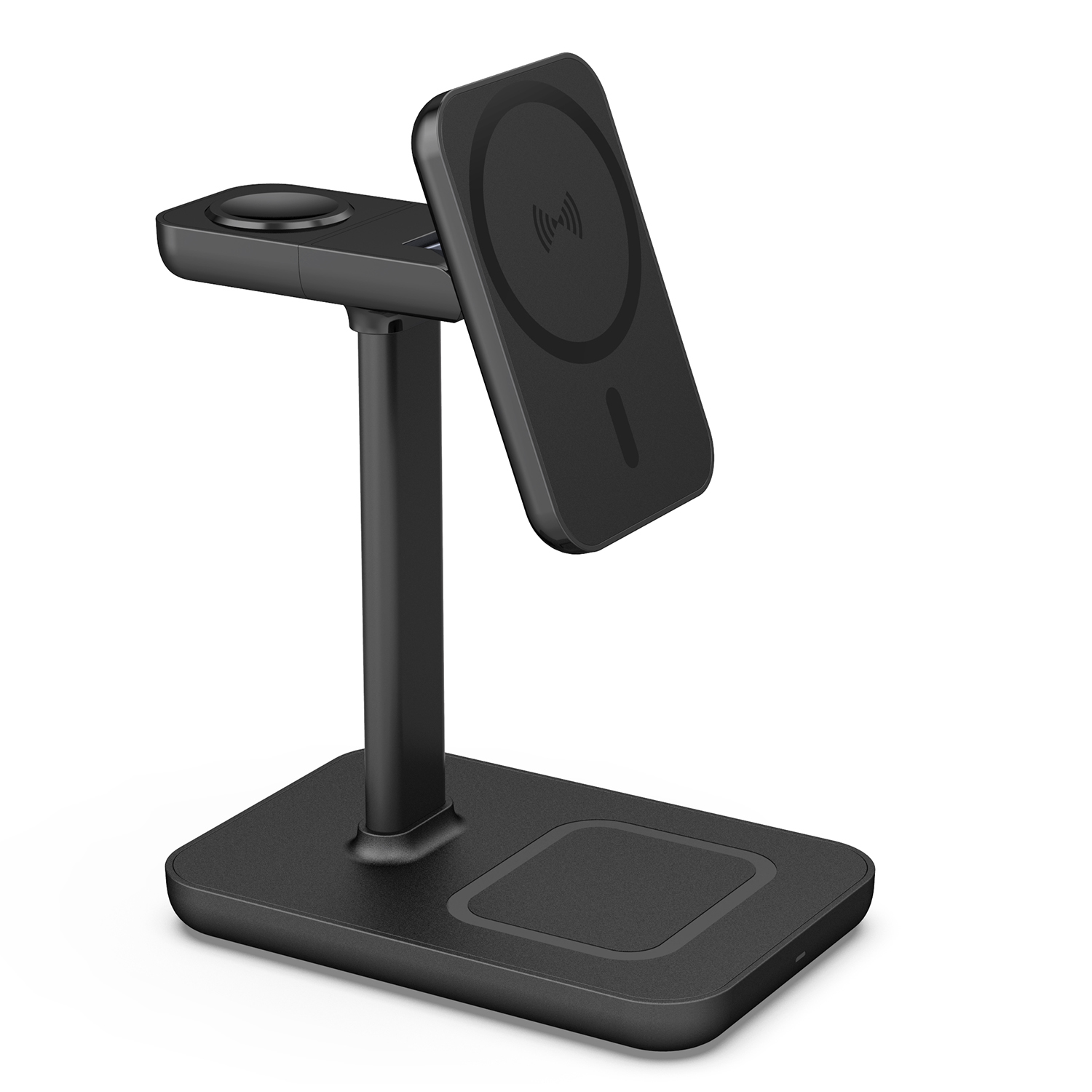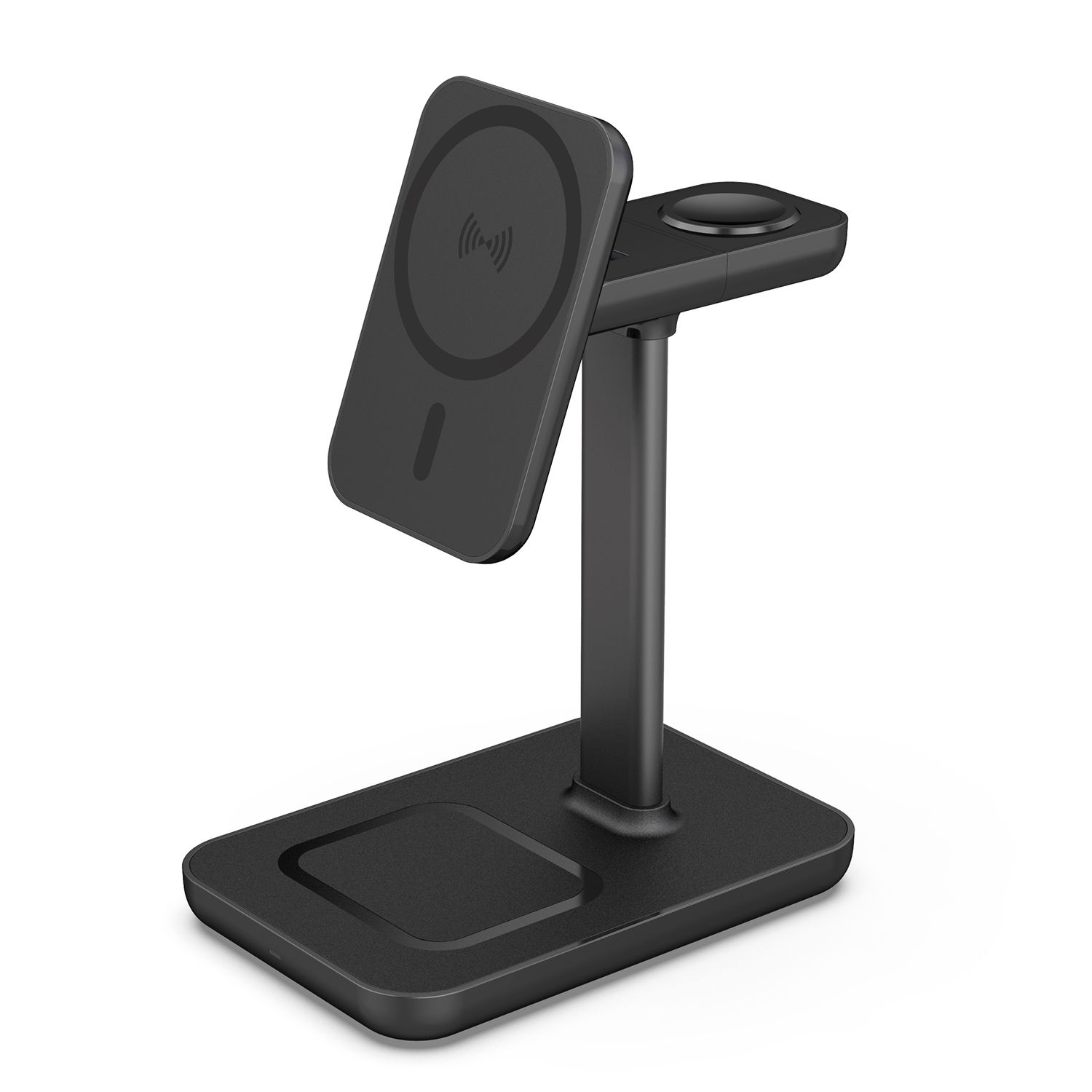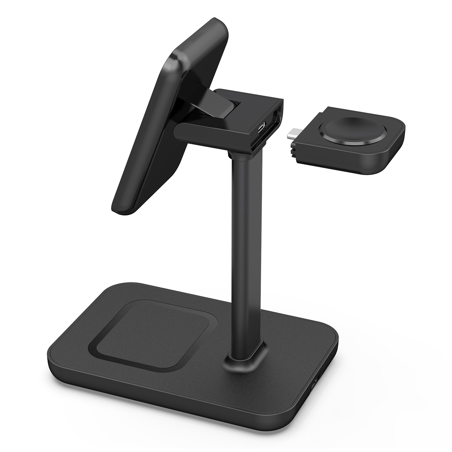 3 in 1 wireless charger magnetic holder with rotated different viewing, the iwatch charger can be seperated