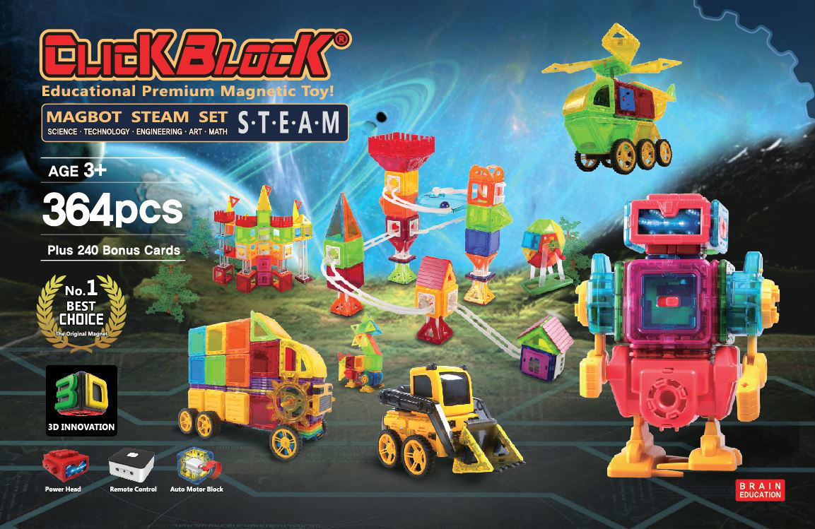 This magnetic block set comes with 364 magnetic blocks of different sizes and colors, suitable for stacking and interactive play to develop young one’s imagination as well as creativity. It also includes multiple gears to help in building castles, trucks, robots and more, offering your little one an afternoon of fun.