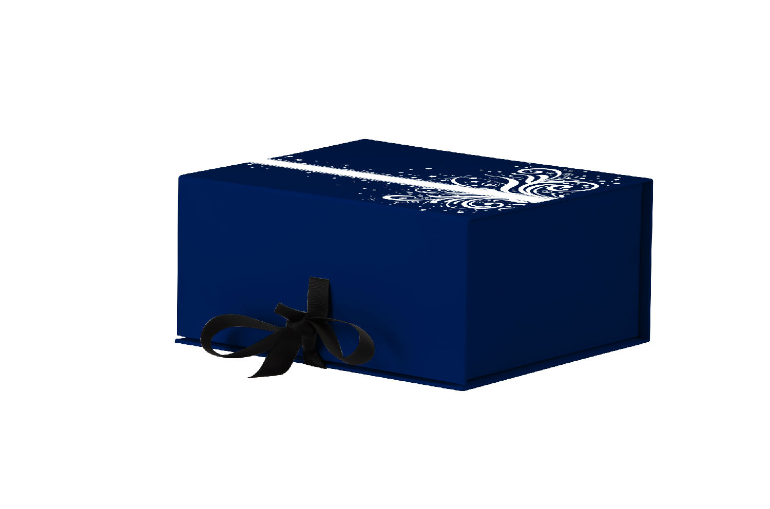 The featured box is made of paper material and comes in a foldable rectangular design. It has a magnetic flap for closure and has a ribbon handle for adding an elegant touch. This box has a spacious interior for storage and can provide good protection to the contents inside.
