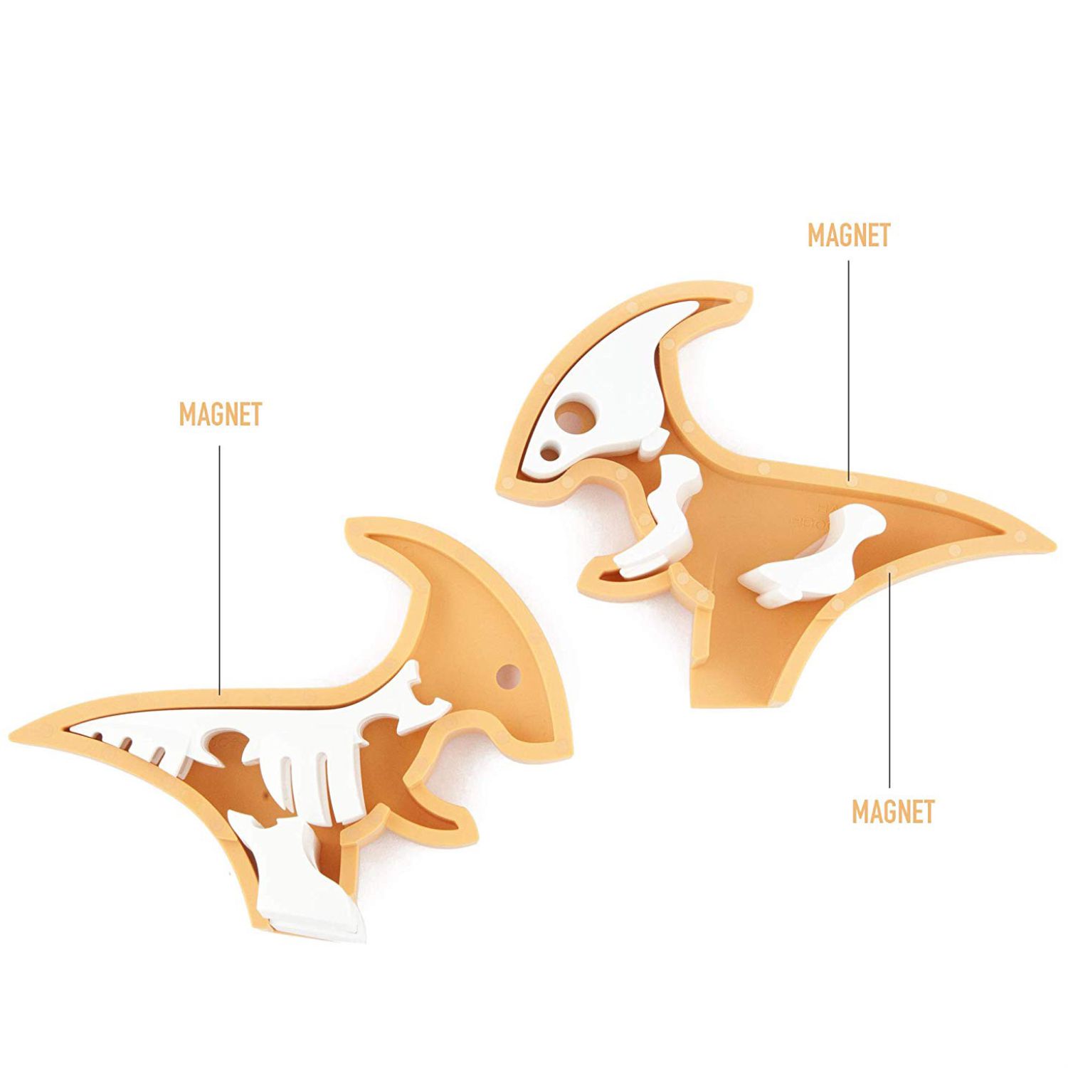 • Magnetic- Adorable dinosaur features two magnetic halves that when opened reveal an interior 3D puzzle skeleton