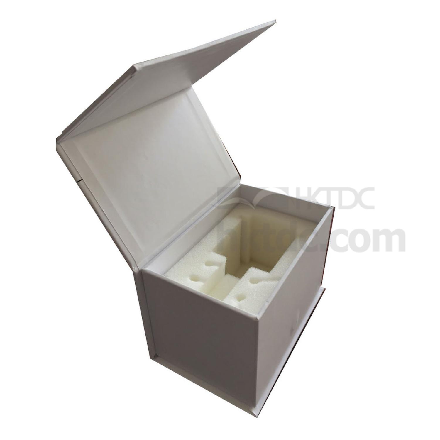 Construction: inner rigid tray with outer book case cover with magnetic closure flap