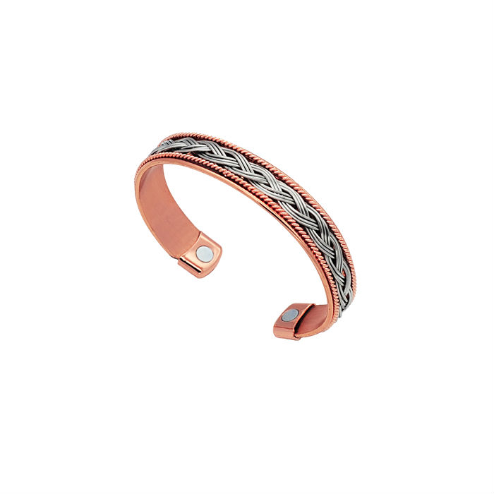 Crafted with pure copper, the slim bracelet is accented with braided details on the top and two rare-earth magnets at two ends. This gorgeous accessory boasts a luxurious and elegant design, offering magnetic therapy while keeping you in style. Wear it alone or stack it with other bangles, this versatile piece will stand out on any outfits.