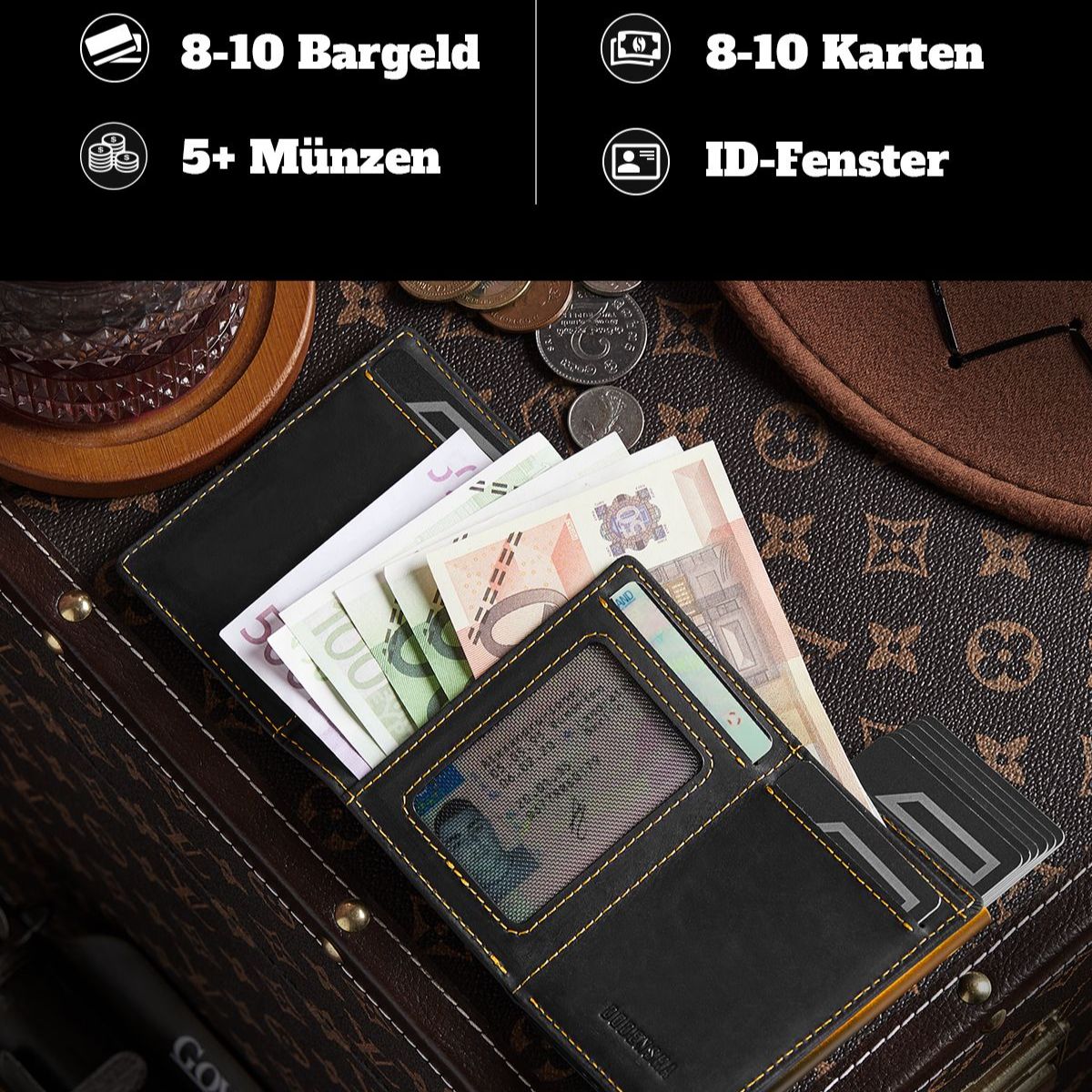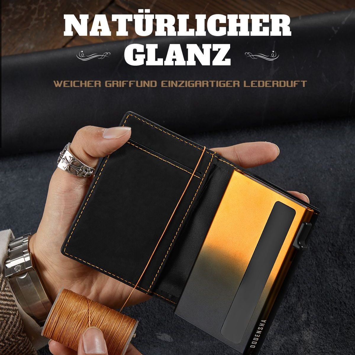 High-quality workmanship, maximum safety: the DODENSHA men's wallet is carefully made from selected genuine leather, with experienced craftsmen dedicated to outstanding craftsmanship. Equipped with a highly secure aluminium card case with pop-up function, the one-button card removal function simplifies your life. The special RFID/NFC protection technology ensures that your cards are protected from wireless theft and personal data loss.