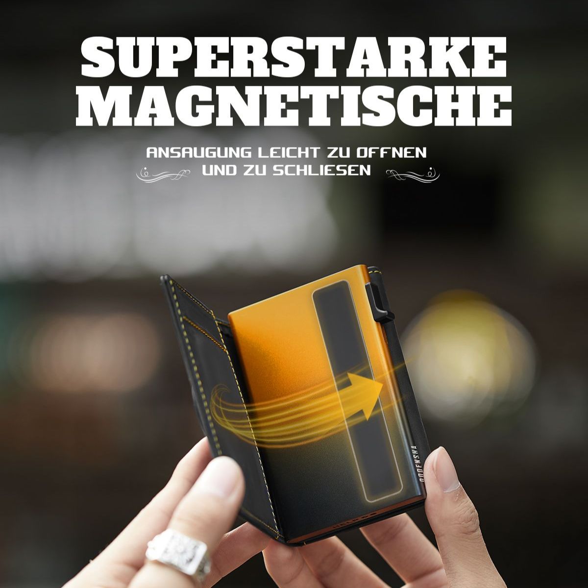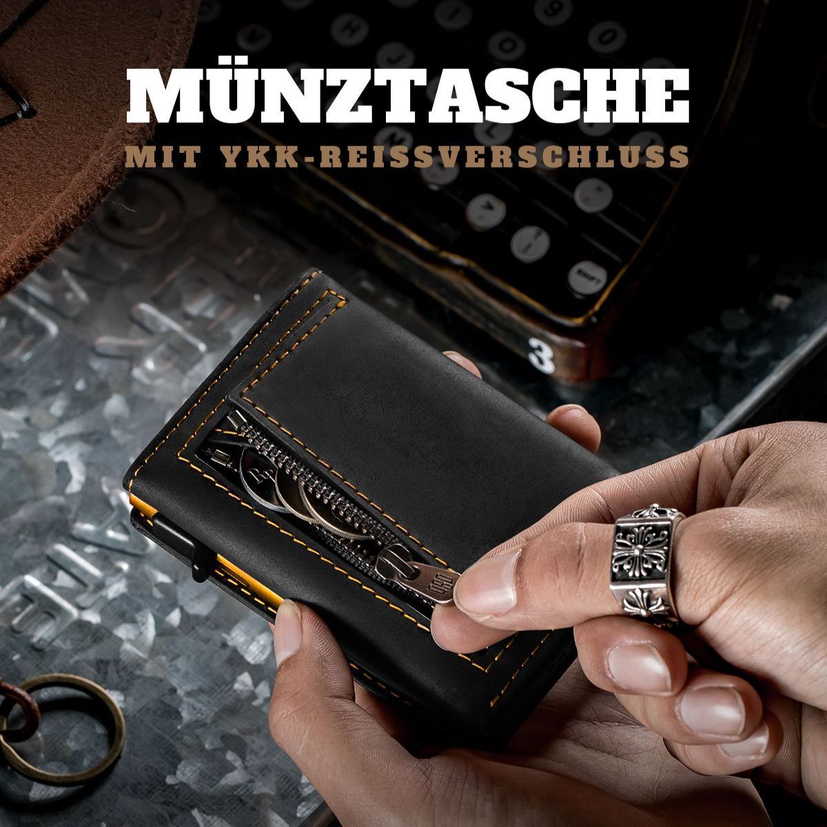 Exclusive aluminium case card case: We have introduced a PC material to ensure the hardness and elasticity of the card case and completely solve the problem of button breakage, so you no longer have to worry. What's even more exciting: we added an emergency card access design to the bottom of the card case with coin pocket, so even if too many cards accidentally inserted, these can be easily removed.