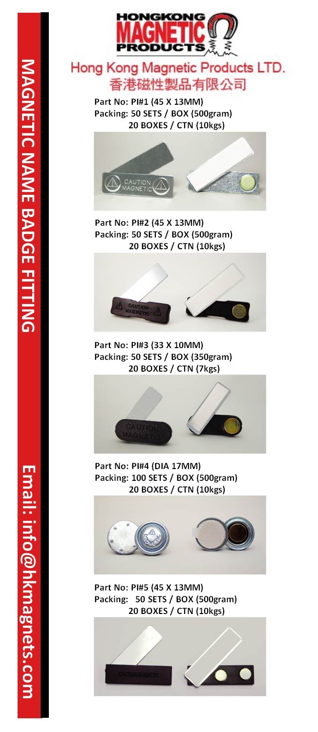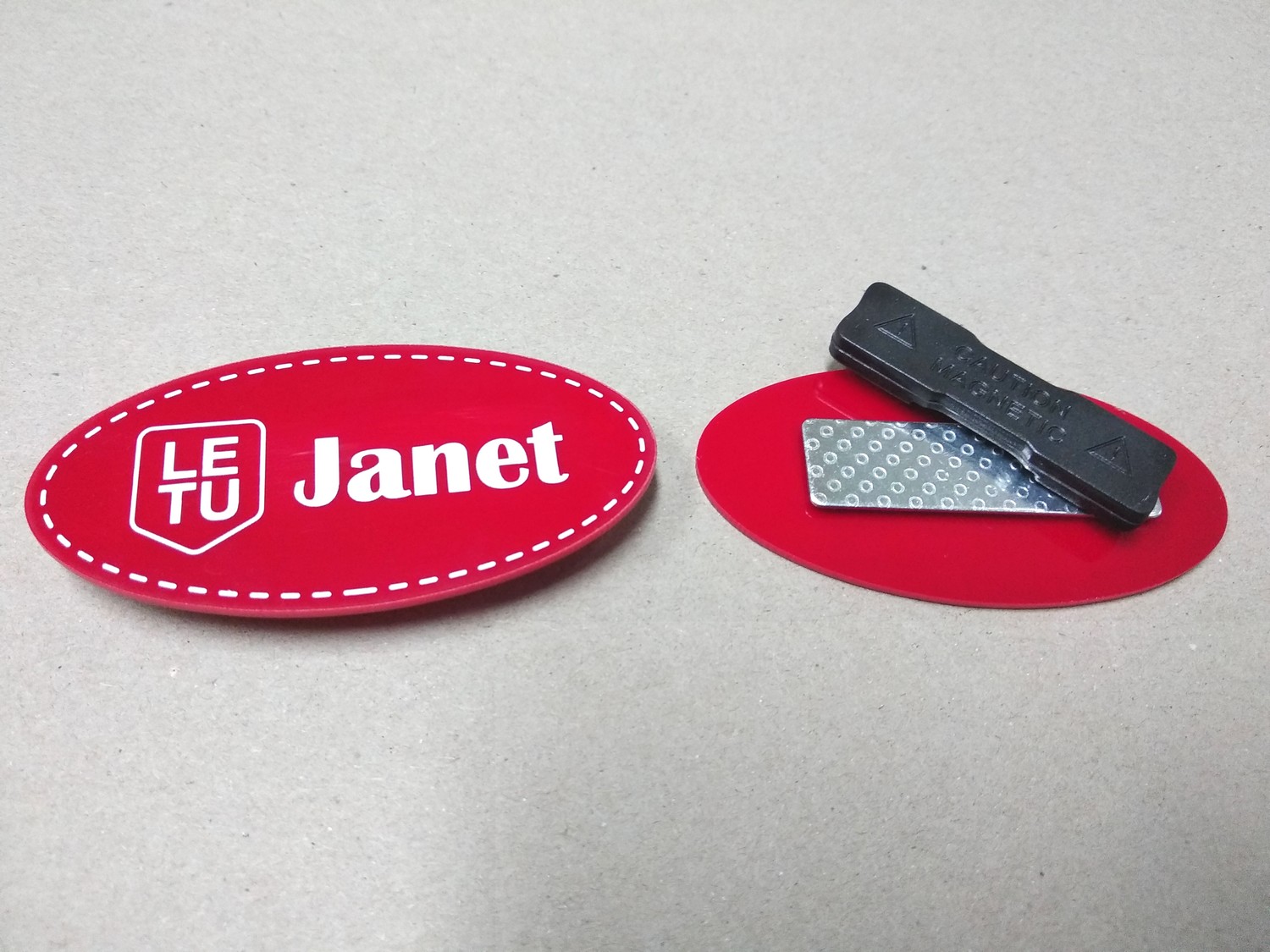 We produce and supply magnetic name badge or relevant accessories. There are several standardized designs which are well fitting to different requirement in the daily usage. Material of the badge could be plastic, acrylic or metal plate. Shape of the badge could be customized according to client's logo or prefereable requirement.