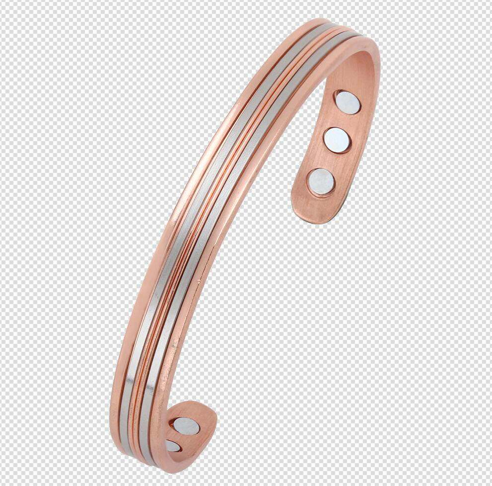 This bracelet is the perfect, stylish solution to pain management. Designed with pure copper and rare earth magnets, it combines powerful, natural, noninvasive healing and practicality effortlessly. Created with style and beauty in mind, this therapeutic bracelet will look gorgeous combined with all other accessories, in a stack of bangles, or as a standout, statement piece. The copper design makes for an on-trend, rose gold look.