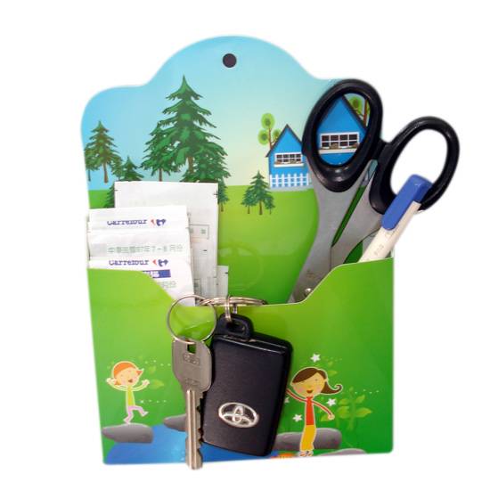 This magnetic pocket is has a piece of magnetic sheet behind the beautiful pocket. It is ideal to be mount on the fridge. The top hold is provided to hook it on wall.