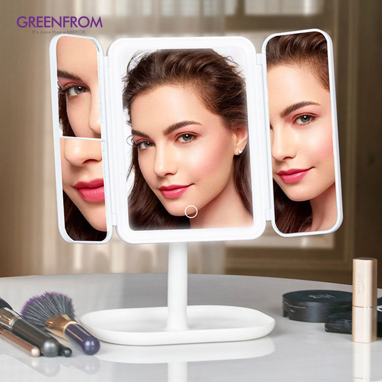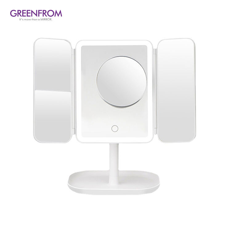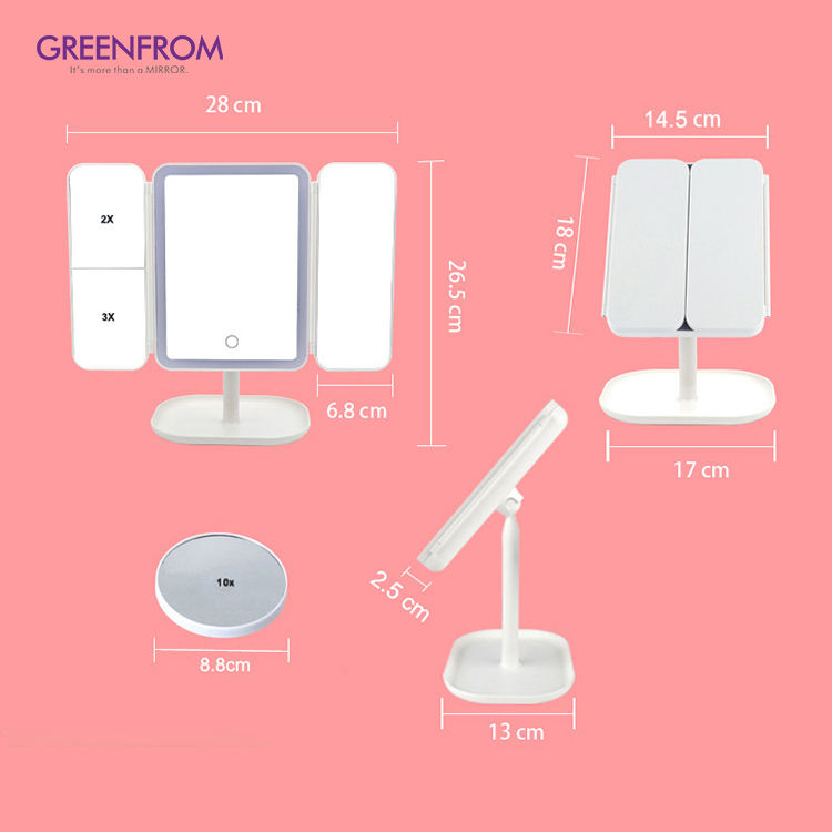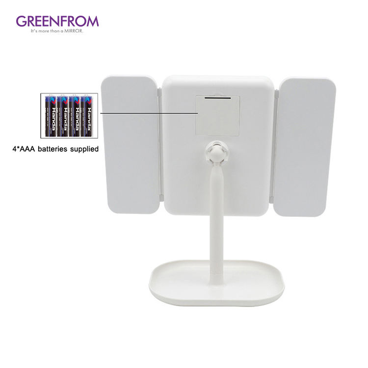 Magnification Touch Screen 4AAA Batteries Led Lighted Makeup Mirror Trifold Vanity Mirror