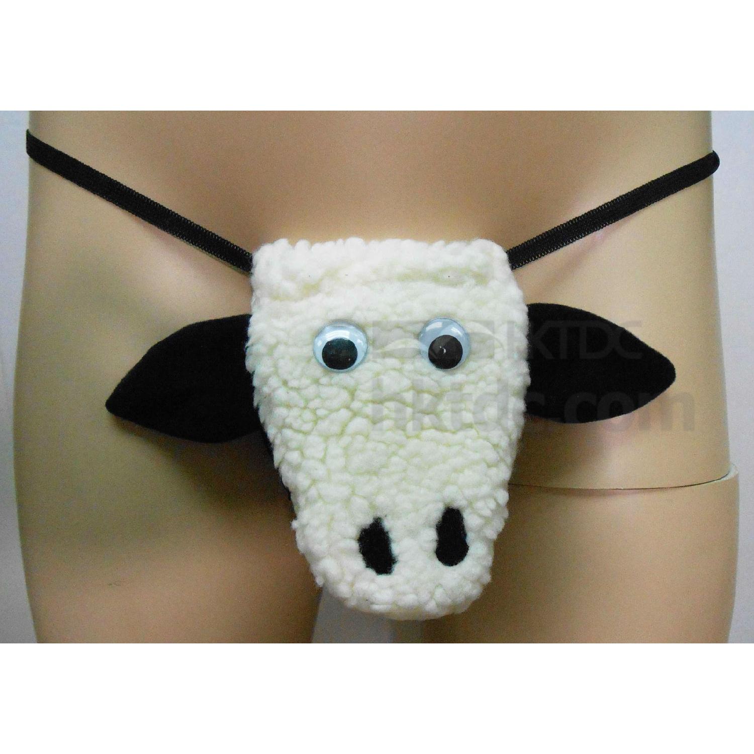 Entertain your friends by using this pair of novelty briefs as a gag gift. It comes in a revealing design with only an elastic band for wearing and a sheep head crotch pouch to cover up. The pair of briefs is fun to look at and is excellent for making people laugh in parties.