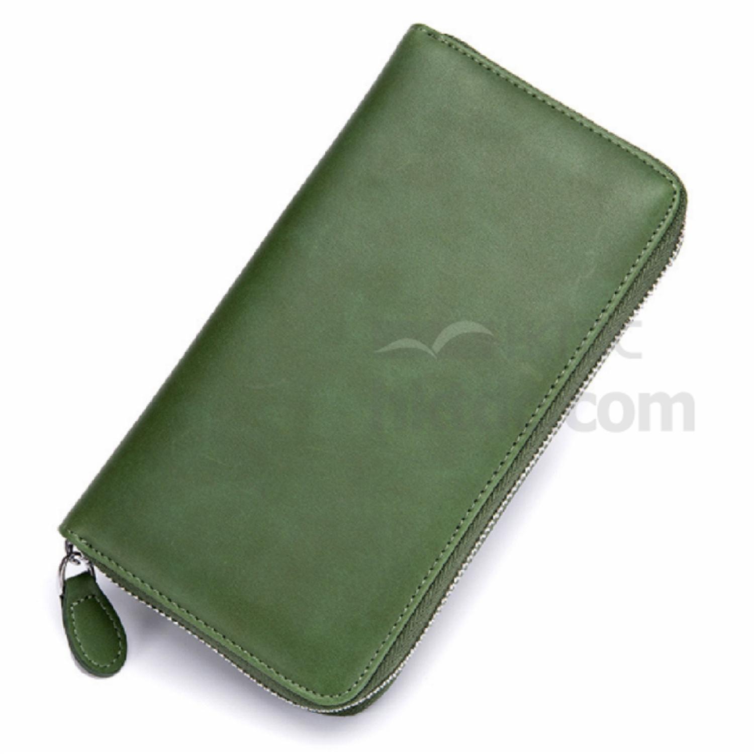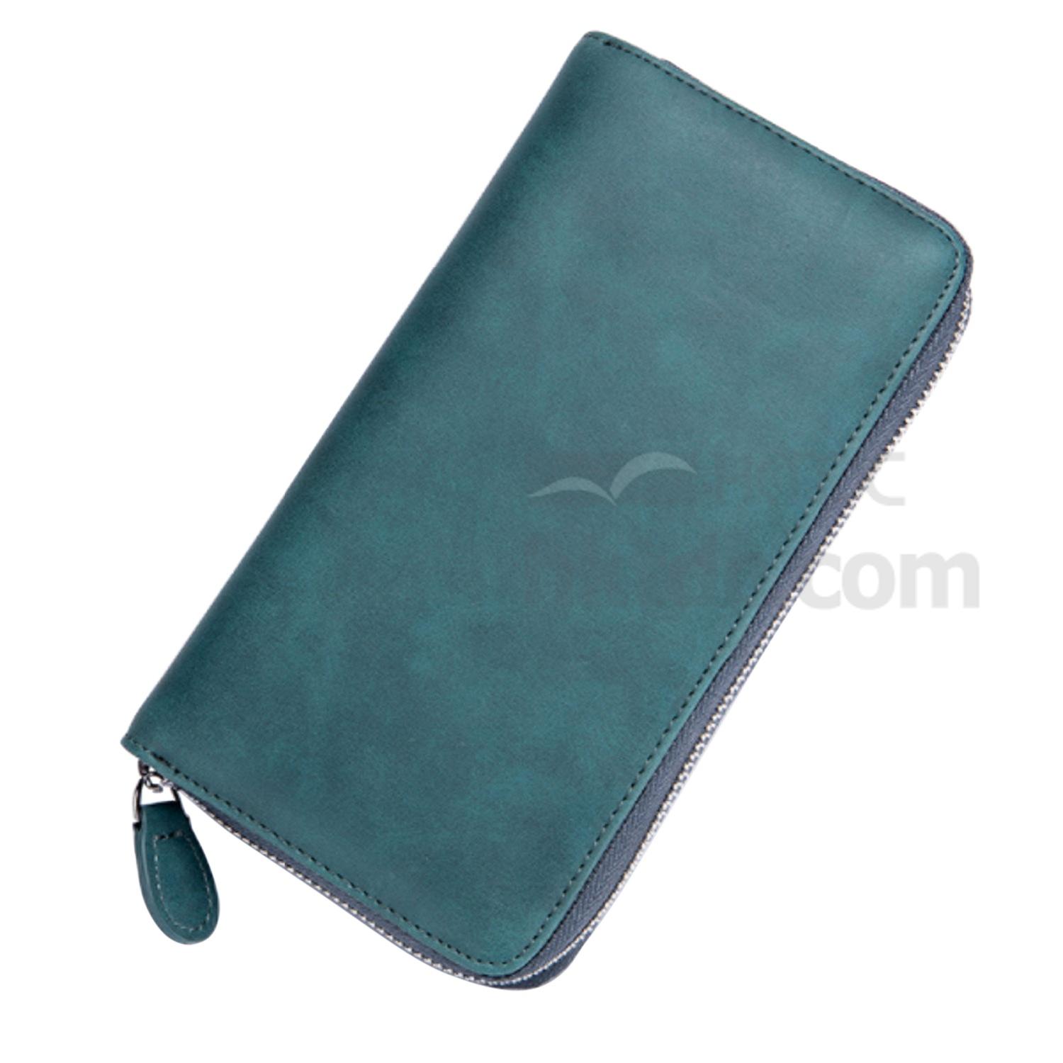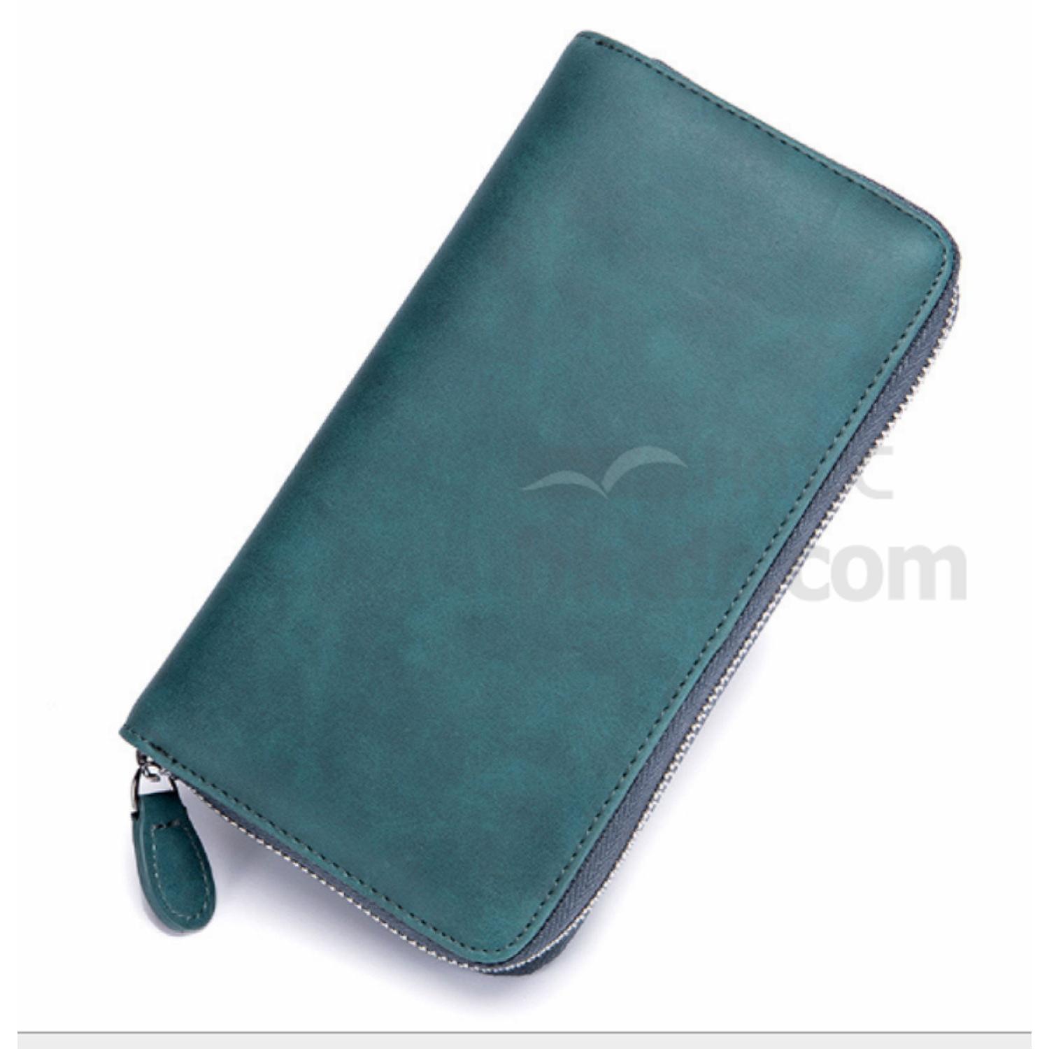 Split Leather Wallet With Wrist Strap Huge Capacity RFID Blocking Zipper Card Holder