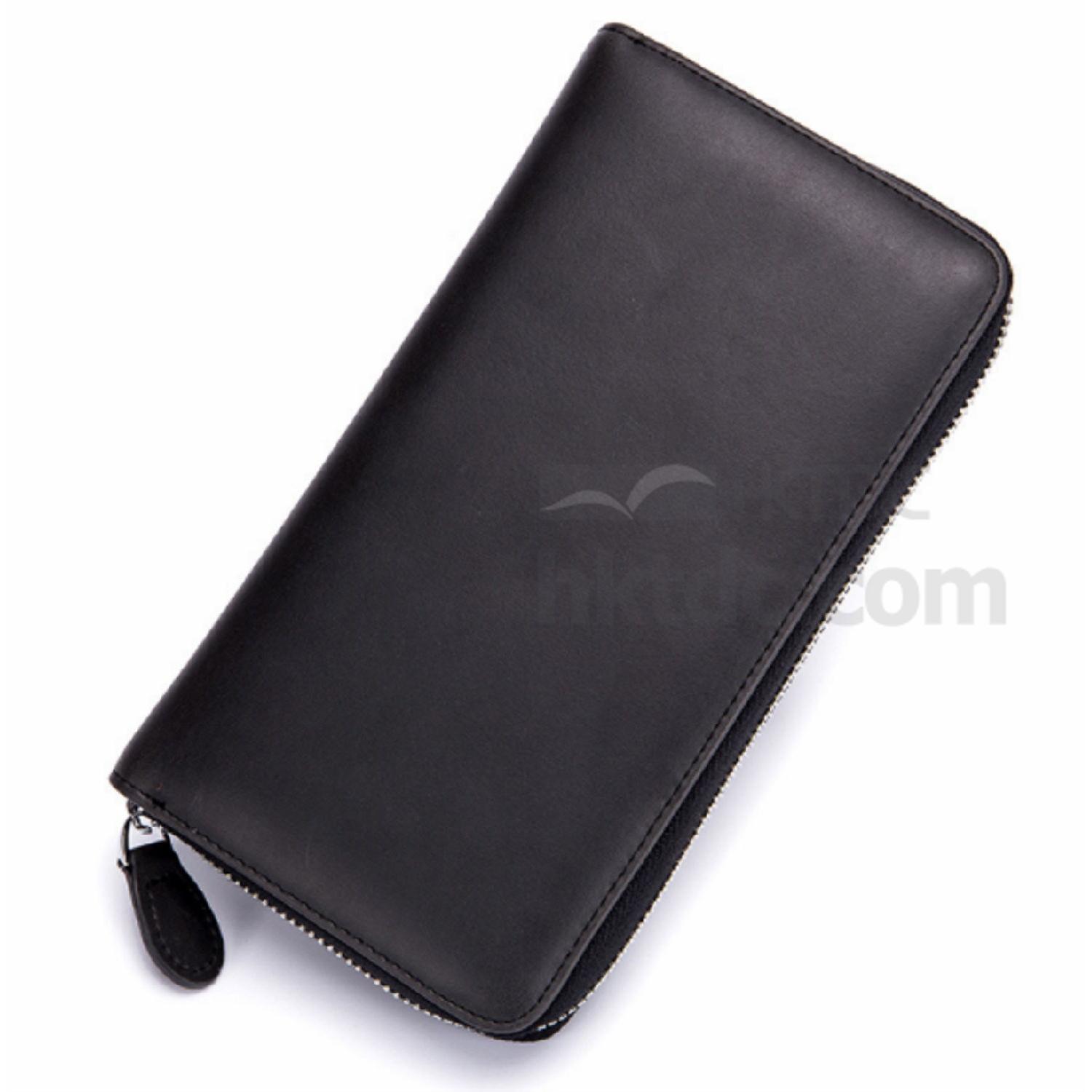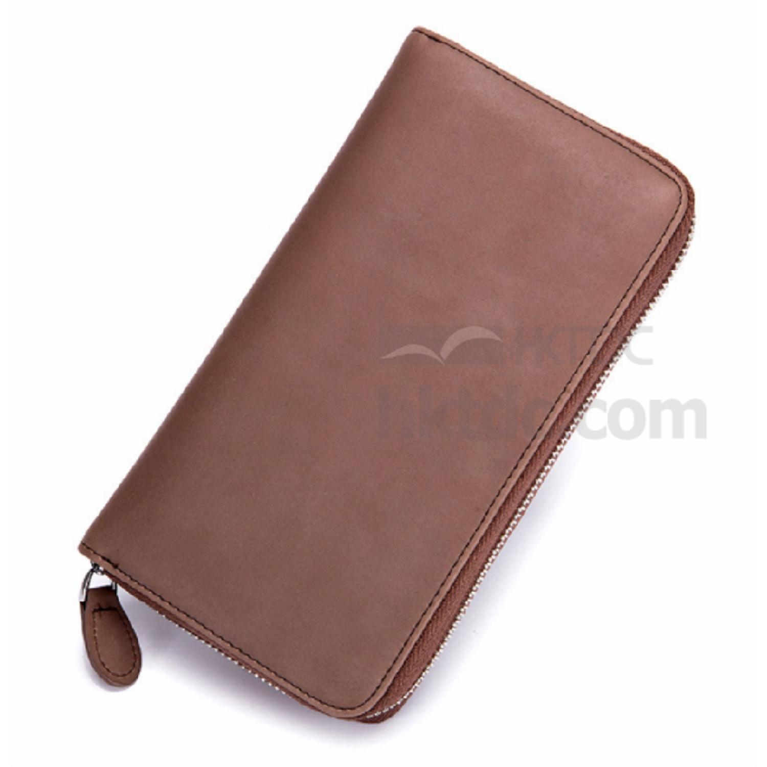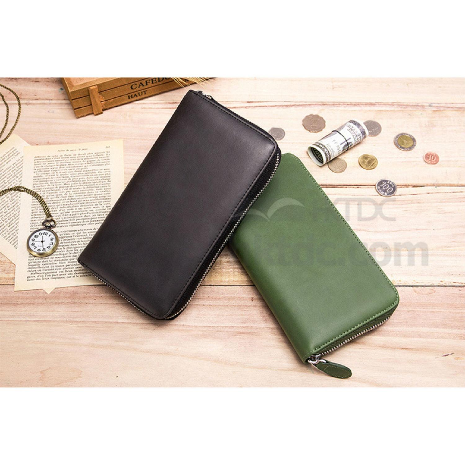 Split Leather Wallet With Wrist Strap Huge Capacity RFID Blocking Zipper Card Holder