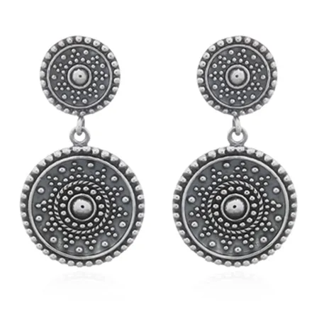 Mandala Dotted Suns Hanging Stud Silver Earrings