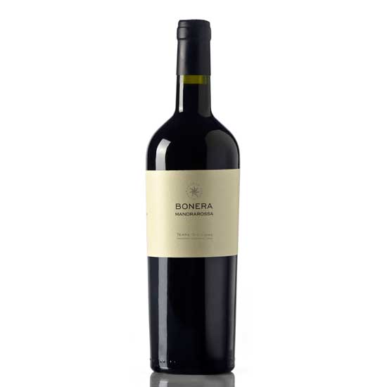 Displayed is a bottle of Mandrarosse that originates from Italy. Matured in barriques for 3 months, this red wine has a rich nose and a smooth texture. This table wine goes well with steaks and stews.
