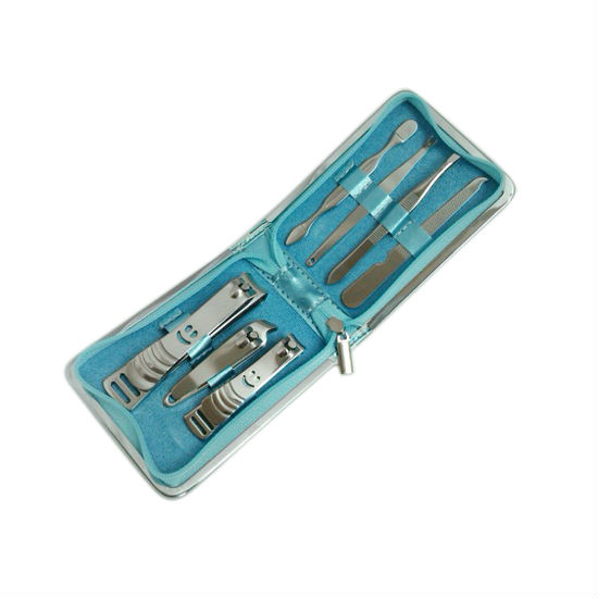 Shown here is a 6-in-1 manicure kit. This sturdy set is constructed from stainless steel material for a long using time. Details are added to the clippers with an adorable smiling face. Securely wrapped in a handy zippered case, you can easily carry around with this grooming tool kit. Keep your nails look nice and fresh with this practical set.