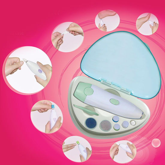 This compact manicure and pedicure set is convenient for nail trimming, contouring and shaping. The heads are interchangeable and can be easily attached to the handle for ease of use. It is an essential for beautiful manicures and pedicures.