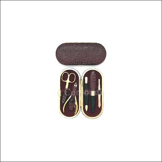 • The complete manicure tools are packed securely in a redish brown leather manicure set box