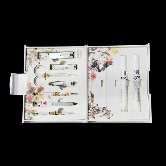 This is a metal manicure set that is well packed in an exquisite box. The manicure set includes a nail clipper, a pair of cuticle scissors, a nail file, a tweezers, etc. Keep your fingers nice and neat with this manicure set anytime.