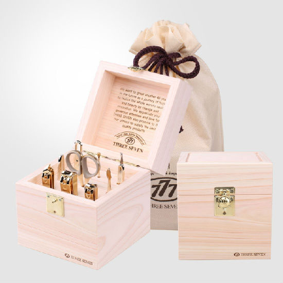 This set consists of a retinospora case and 9 implements, such as a pair of toenail clippers, a pair of nail clippers, a pair of cuticle clippers, an ear pecker, a pair of tweezers, a nail file, a pair of safety scissors, a cuticle trimmer, and a cuticle pusher. It comes with a string bag for a perfect finish. This set is a great choice as a gift for your friends.